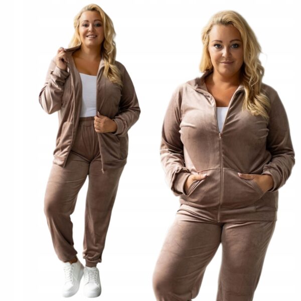 × Dres welurowy KOMPLET SPODNIE BLUZA ROZPINANA CAPPUCCINO PL PLUS SIZE 44/46 139.99