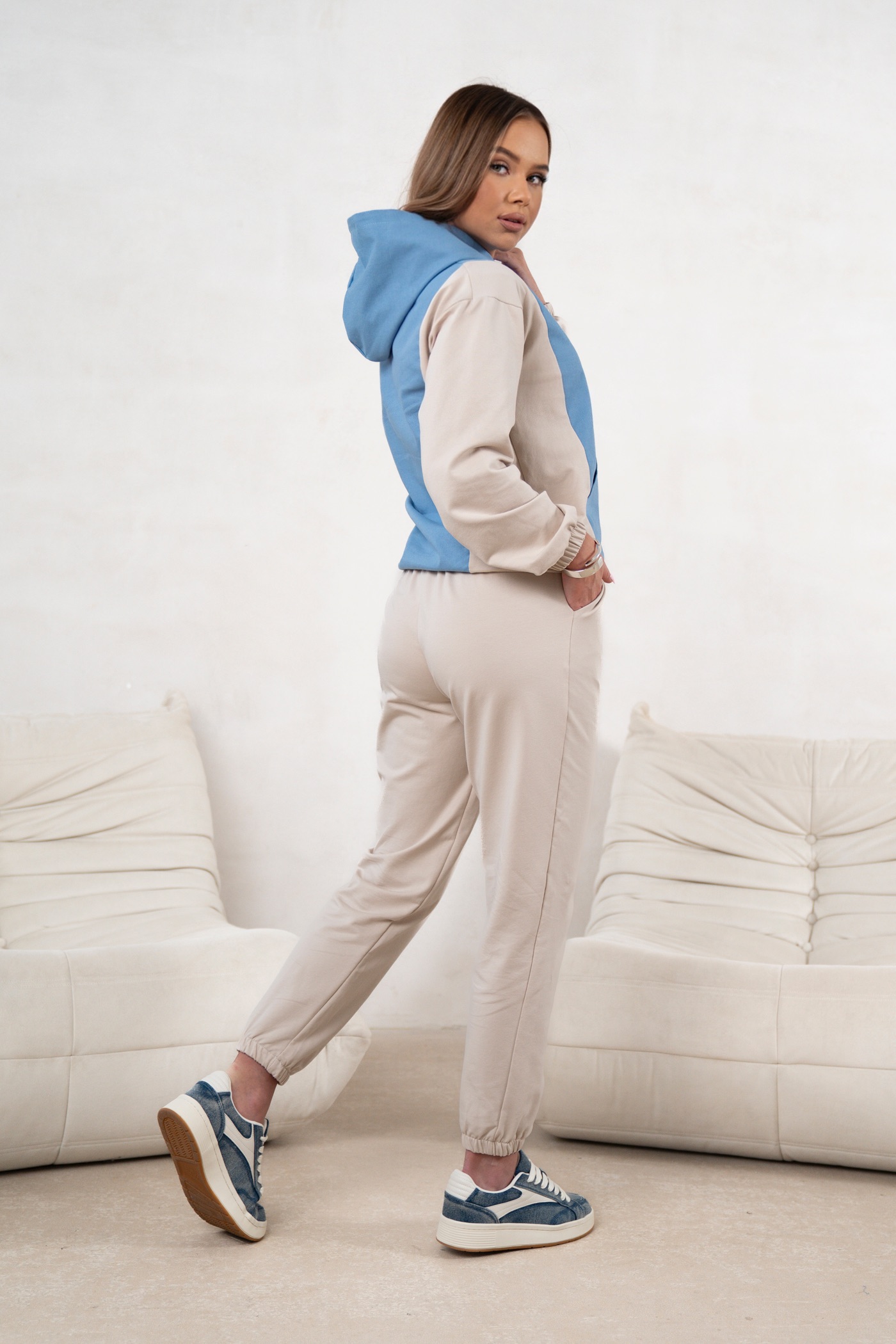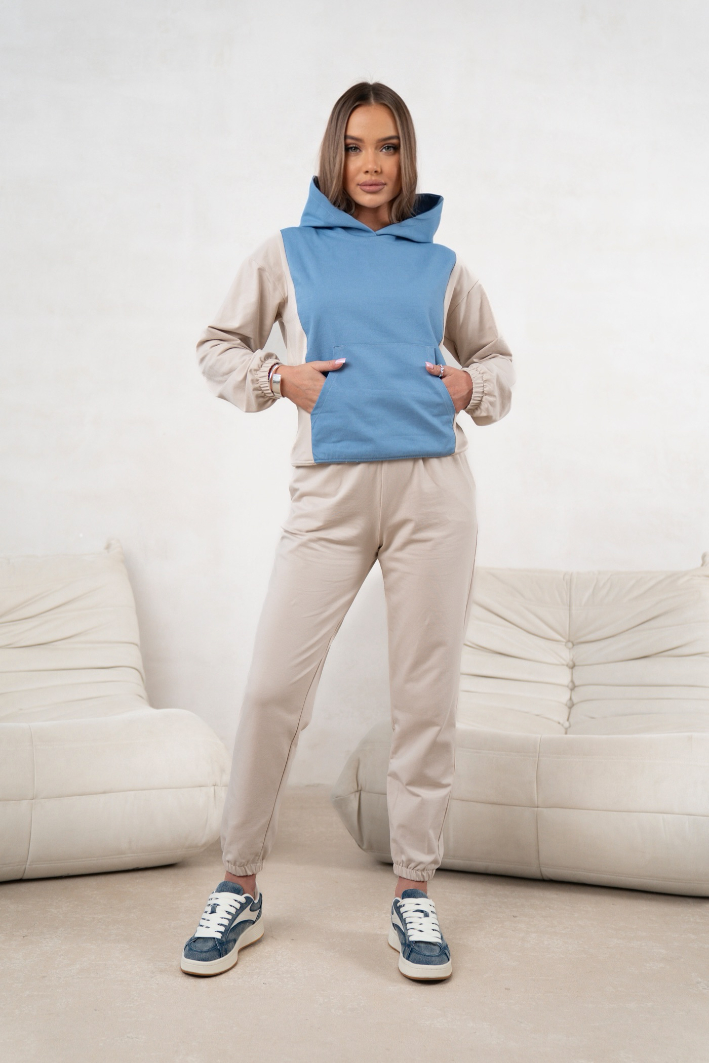 Odkryj absolutny must-have tego sezonu. Komplet Denim Fusion to innowacyjne połączenie modnego total denim look z wygodą, jaką daje miękka, elastyczna dzianina dresowa. To idealna propozycja dla kobiet, które chcą wyglądać stylowo, a jednocześnie czuć się swobodnie przez cały dzień.