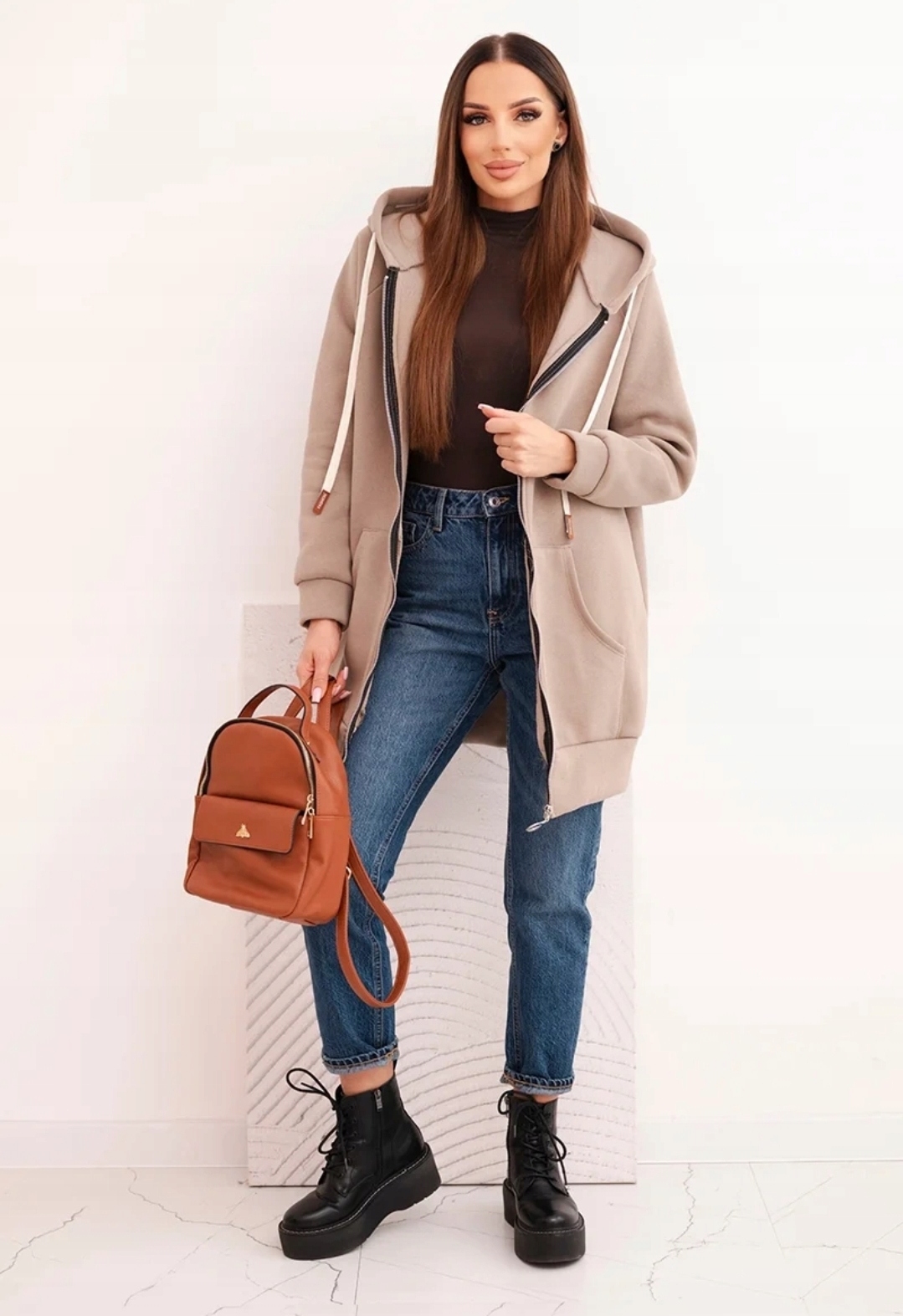 Model zapinany na zamek na całej długości, wyposażony w duży kaptur z szerokimi sznurkami oraz praktyczne kieszenie z przodu. Uniwersalny rozmiar M–2XL dobrze dopasowuje się do różnych typów sylwetek. Bluza pochodzi z włoskiej produkcji, co zapewnia wysoką jakość wykonania.