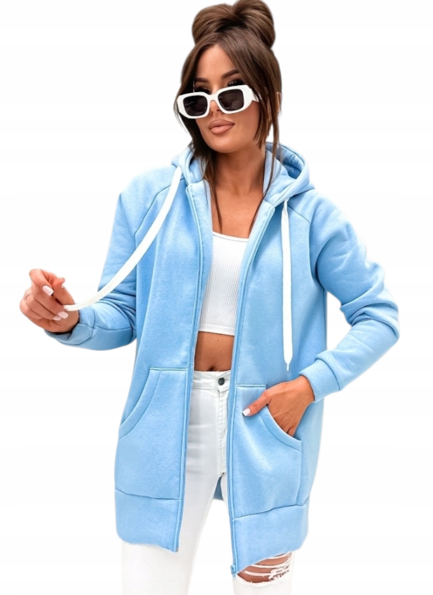 Model zapinany na zamek na całej długości, wyposażony w duży kaptur z szerokimi sznurkami oraz praktyczne kieszenie z przodu. Uniwersalny rozmiar S–L dobrze dopasowuje się do różnych typów sylwetek. Bluza pochodzi z POLSKIEJ produkcji, co zapewnia wysoką jakość wykonania.