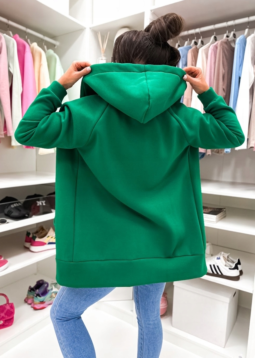 Model zapinany na zamek na całej długości, wyposażony w duży kaptur z szerokimi sznurkami oraz praktyczne kieszenie z przodu. Uniwersalny rozmiar S–L dobrze dopasowuje się do różnych typów sylwetek. Bluza pochodzi z POLSKIEJ produkcji, co zapewnia wysoką jakość wykonania.
