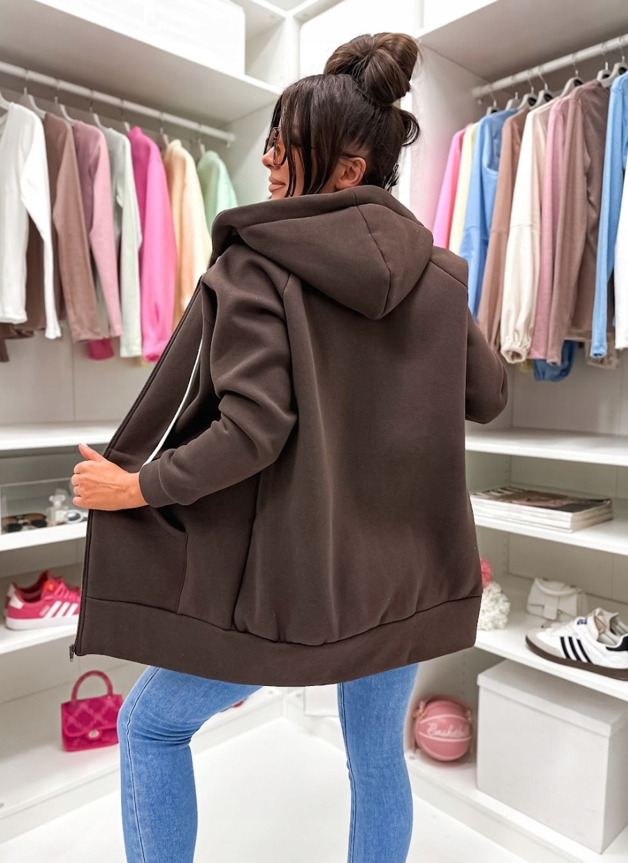 Model zapinany na zamek na całej długości, wyposażony w duży kaptur z szerokimi sznurkami oraz praktyczne kieszenie z przodu. Uniwersalny rozmiar S–L dobrze dopasowuje się do różnych typów sylwetek. Bluza pochodzi z POLSKIEJ produkcji, co zapewnia wysoką jakość wykonania.