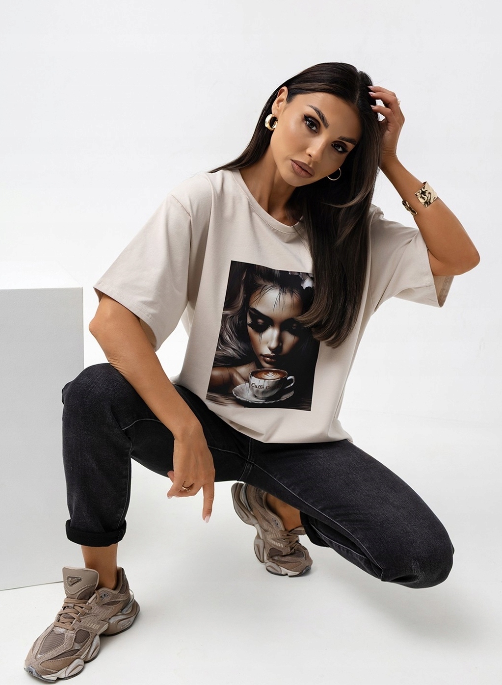 Damski T-shirt premium z modnym nadrukiem – TMC Moda (polski producent)