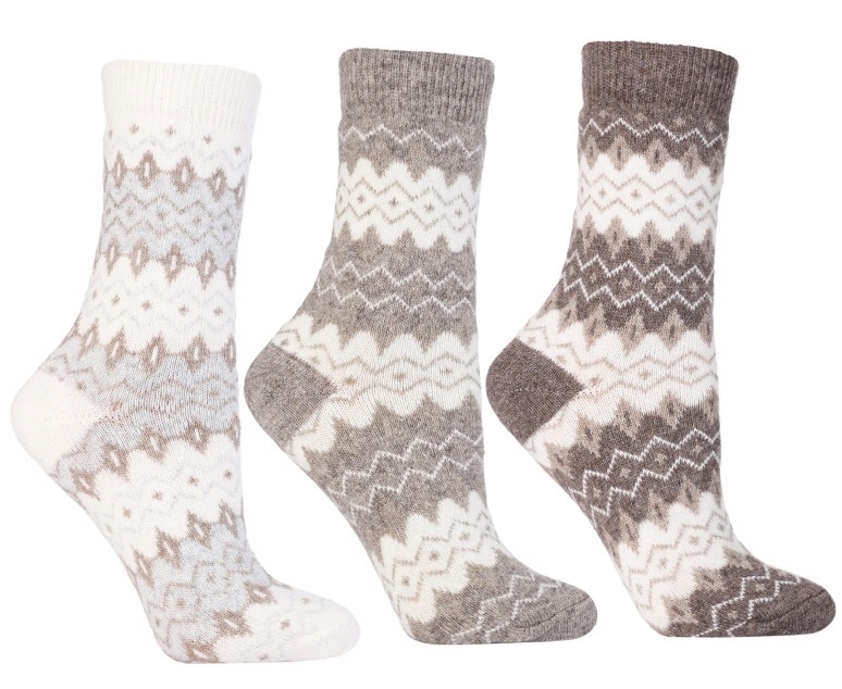 Trzy pary długich, damskich skarpet wełnianych to idealne rozwiązanie na chłodniejsze dni. Wykonane z ciepłej wełny, łączą w sobie funkcjonalność i styl dzięki różnorodnym, kolorowym wzorom.