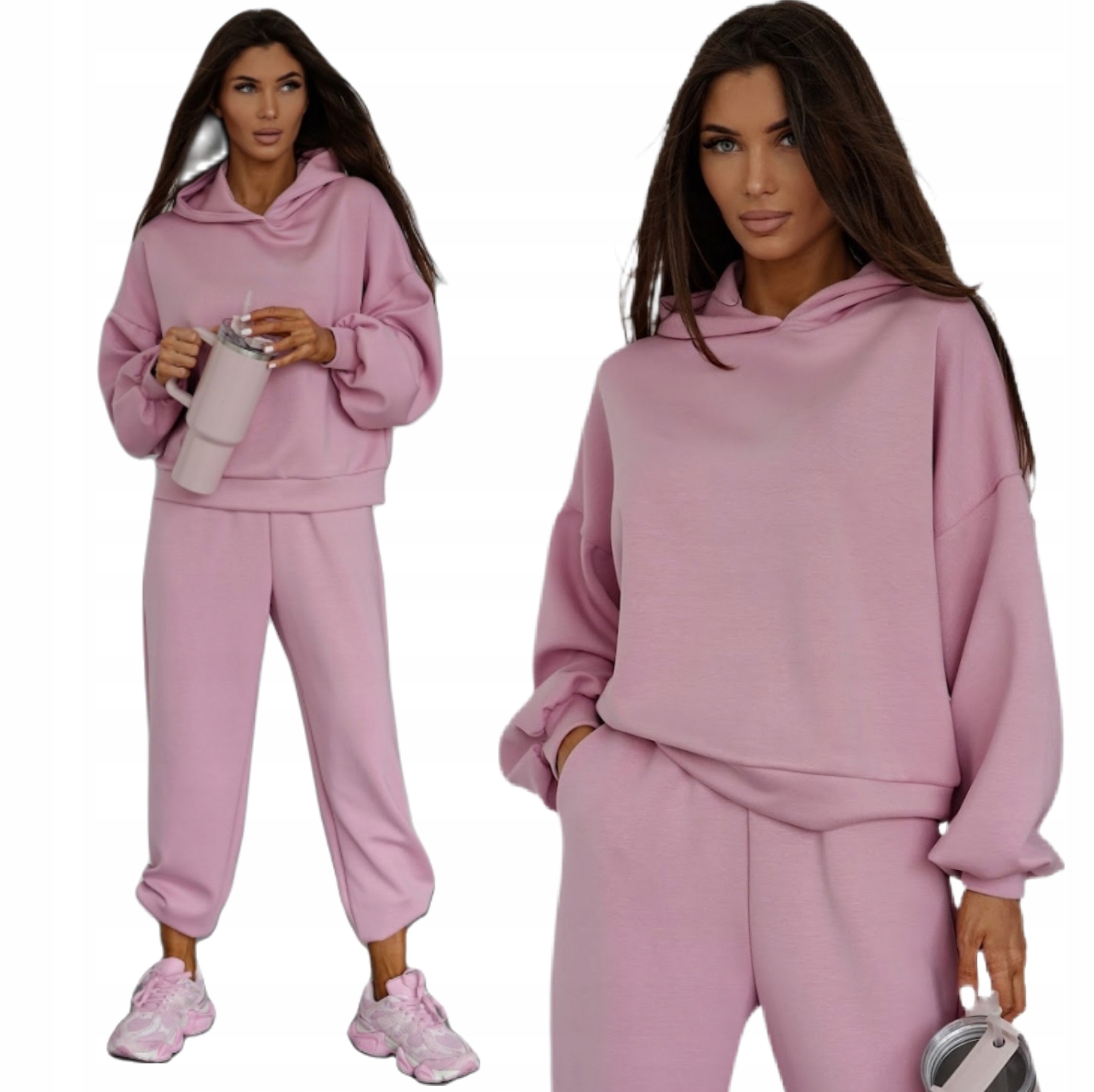 Komplet został uszyty z wyjątkowo miękkiego, przyjemnego w dotyku materiału typu „masełko”, który delikatnie otula ciało i zapewnia komfort noszenia przez cały dzień. Wysoka zawartość wiskozy sprawia, że tkanina jest oddychająca, elastyczna i przyjazna dla skóry.