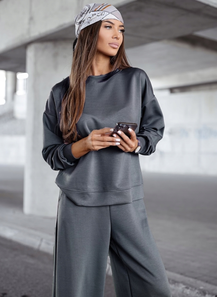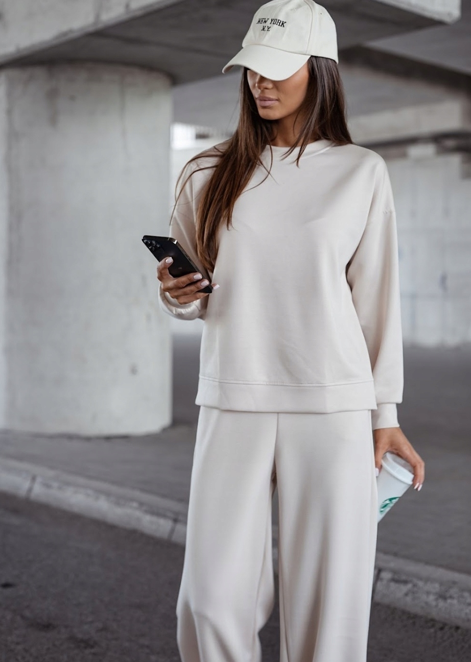 Stylowy komplet wykonany z innowacyjnego materiału Masełko – lekkiego, niezwykle przyjemnego w dotyku i odpornego na mechacenie. To idealna propozycja na chłodniejsze dni – łączy komfort z nowoczesnym designem. Całość została uszyta w Polsce z dbałością o każdy detal.