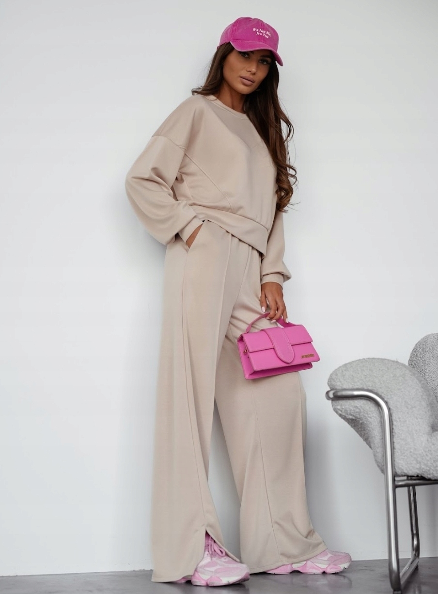 Stylowy komplet wykonany z innowacyjnego materiału Masełko – lekkiego, niezwykle przyjemnego w dotyku i odpornego na mechacenie. To idealna propozycja na chłodniejsze dni – łączy komfort z nowoczesnym designem. Całość została uszyta w Polsce z dbałością o każdy detal.
