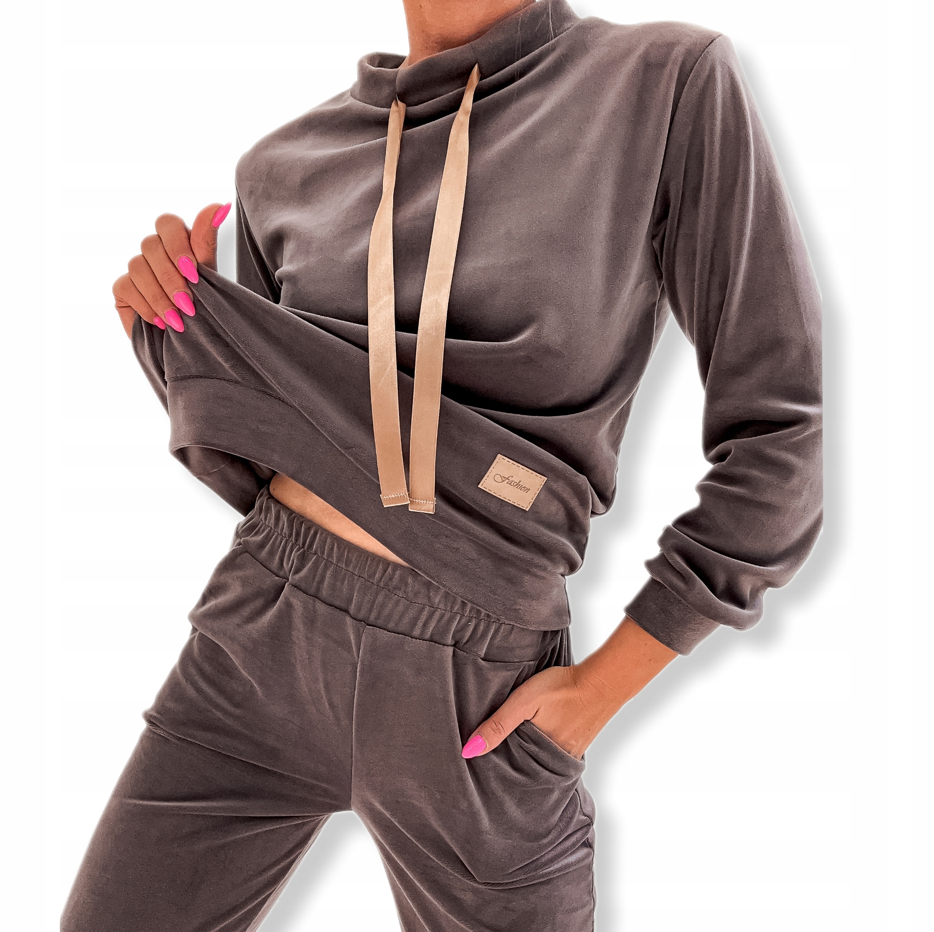 Ten komplet welurowy damski sprawdzi się jako stylowy dres na co dzień, wygodny strój domowy, outfit na spacer czy podróż. Miękki welur dodaje elegancji, dzięki czemu możesz połączyć go zarówno ze sneakersami, jak i bardziej casualowym obuwiem.