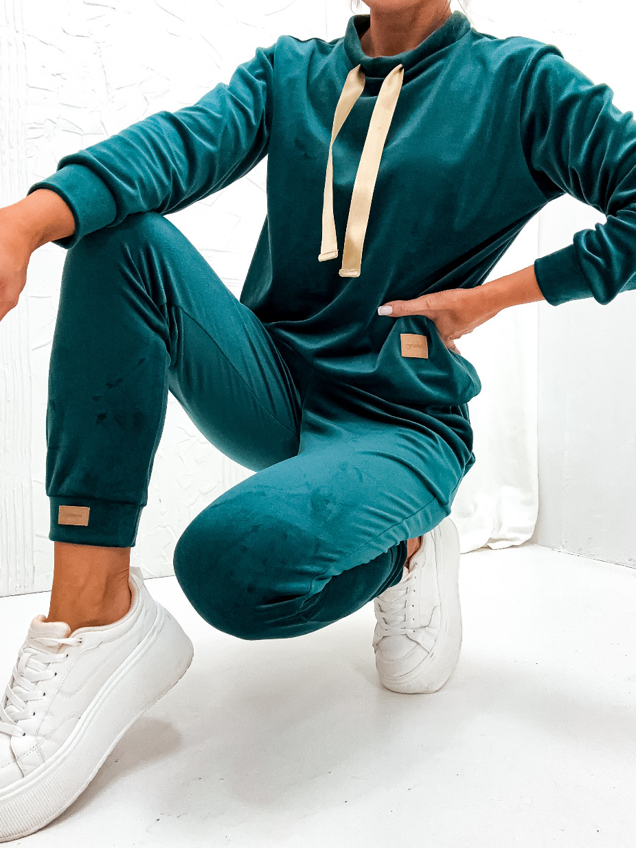 Ten komplet welurowy damski sprawdzi się jako stylowy dres na co dzień, wygodny strój domowy, outfit na spacer czy podróż. Miękki welur dodaje elegancji, dzięki czemu możesz połączyć go zarówno ze sneakersami, jak i bardziej casualowym obuwiem.