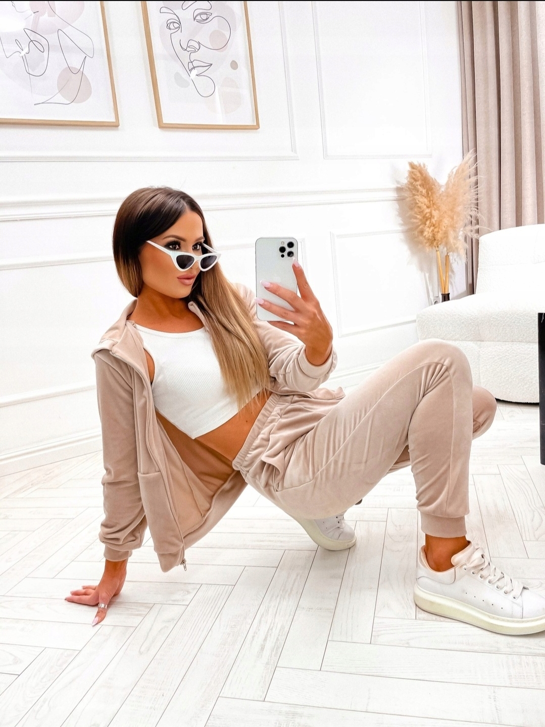 Damski Welurowy Komplet Dresowy – Klasyczny i Wygodny, Polski Producent