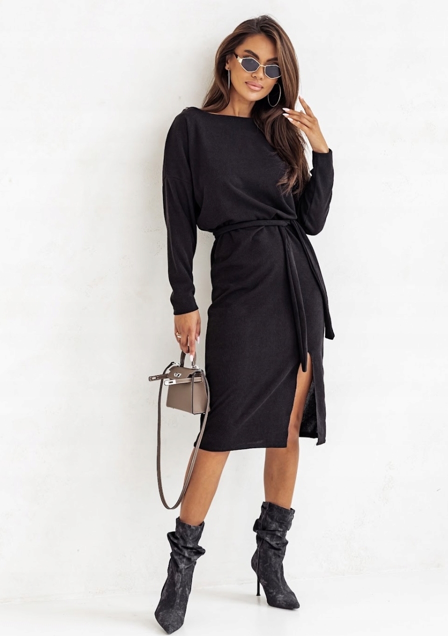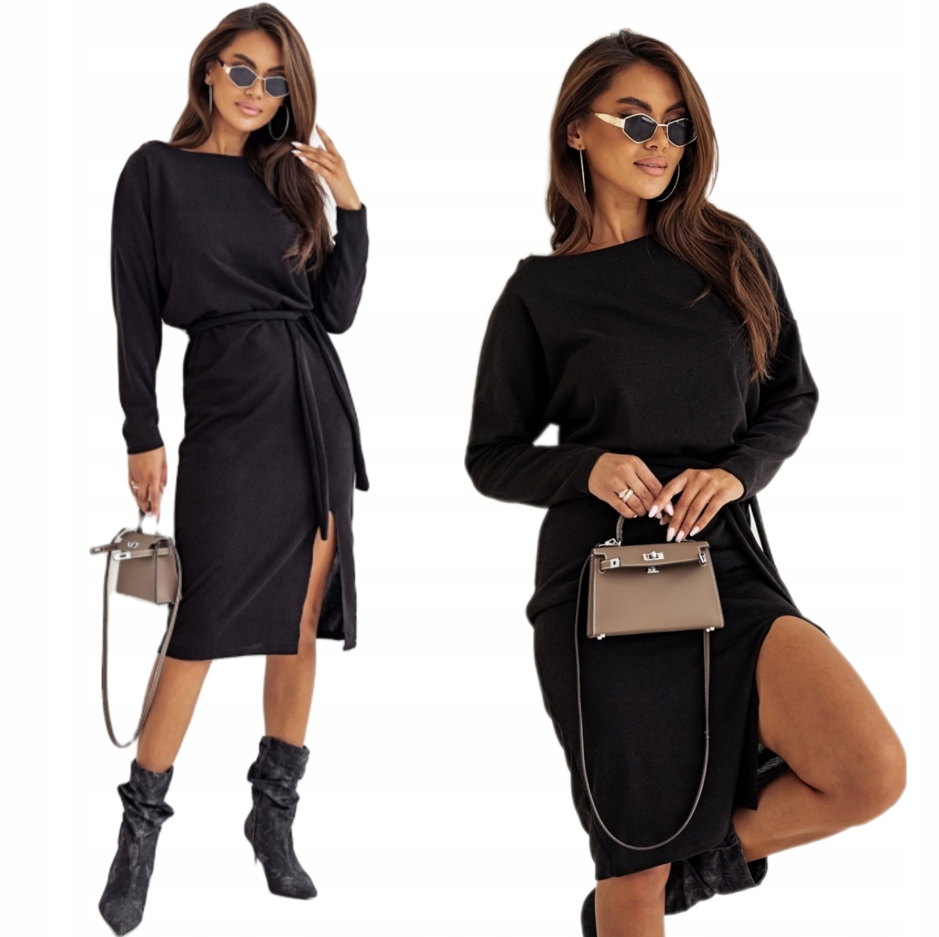 Model | PIĘKNA SWETERKOWA CIEPŁA SUKIENKA Z WIĄZANIEM MIDI |