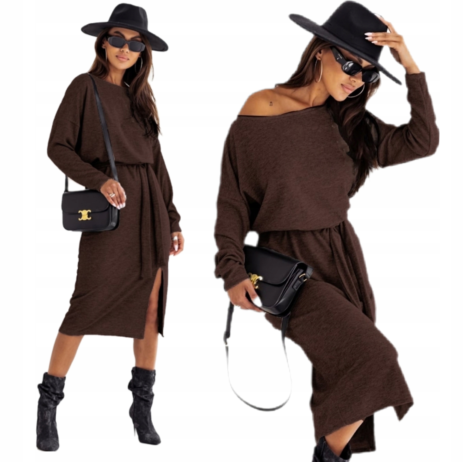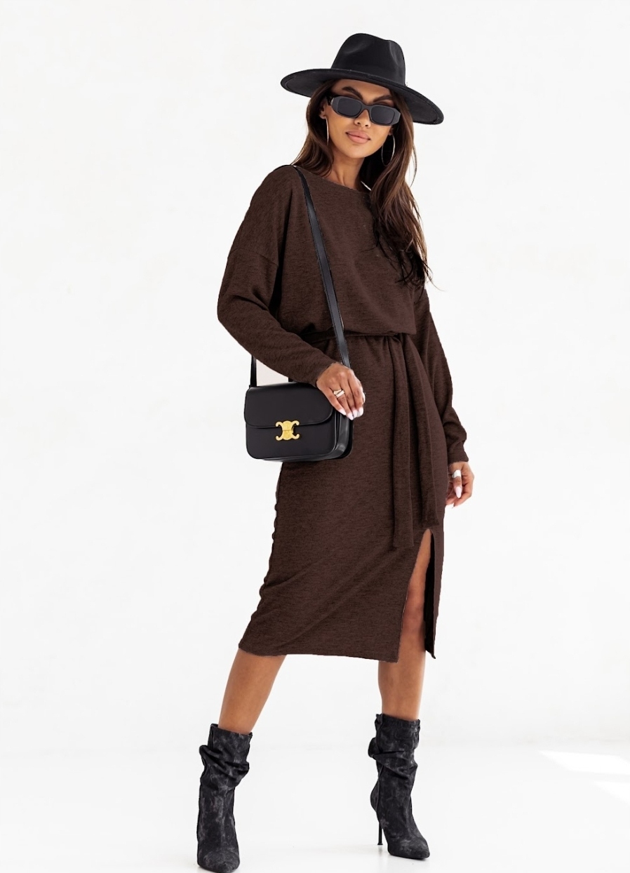 Model | PIĘKNA SWETERKOWA CIEPŁA SUKIENKA Z WIĄZANIEM MIDI |