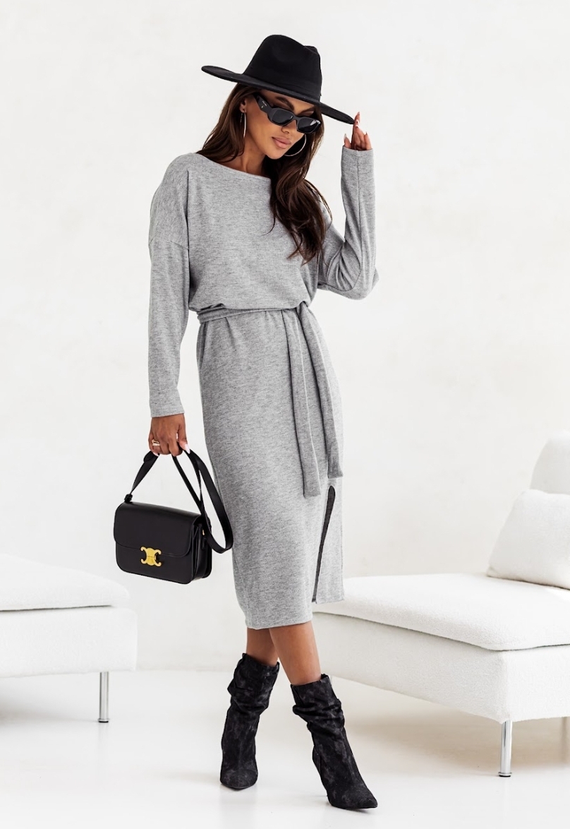Model | PIĘKNA SWETERKOWA CIEPŁA SUKIENKA Z WIĄZANIEM MIDI |
