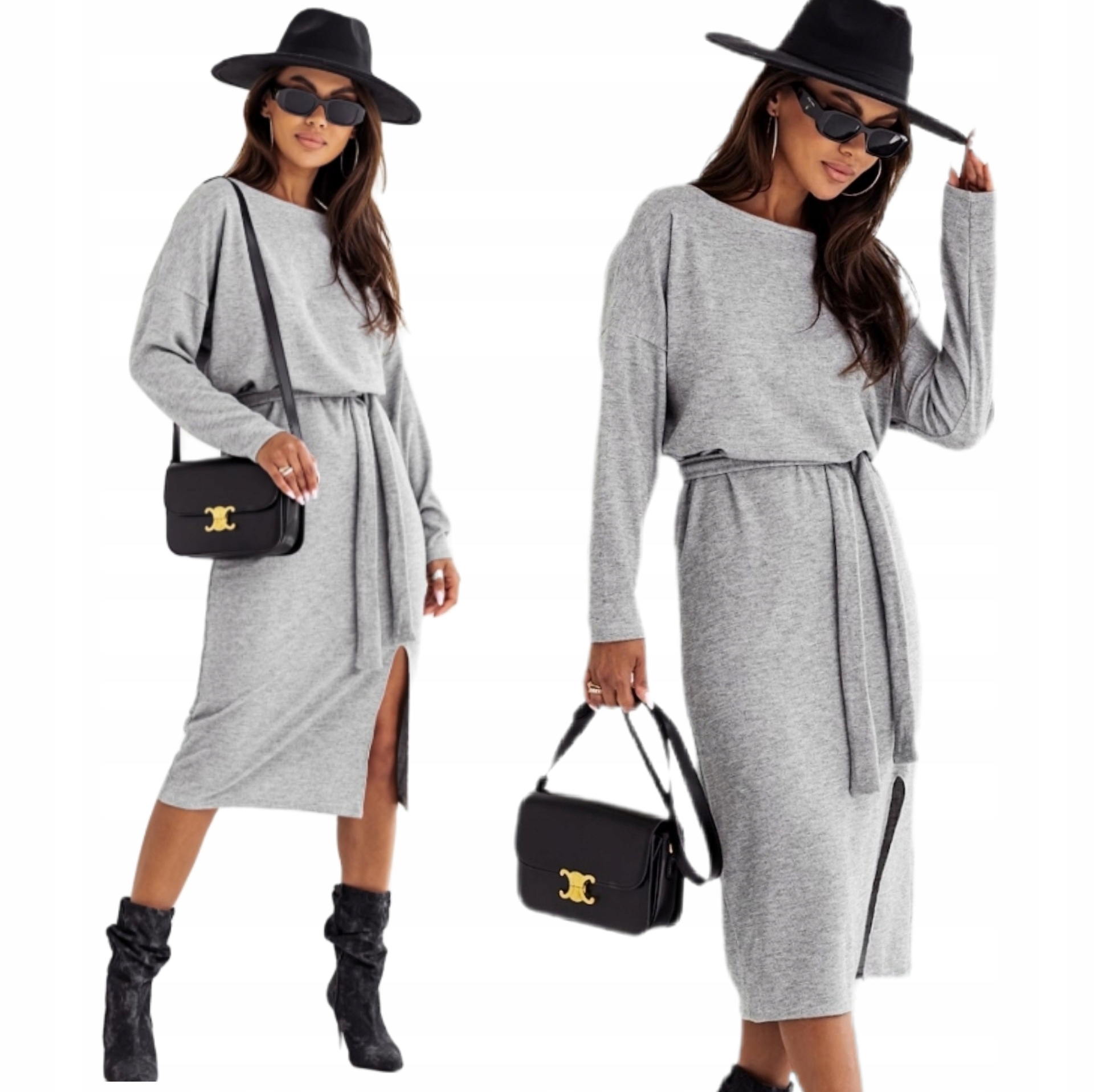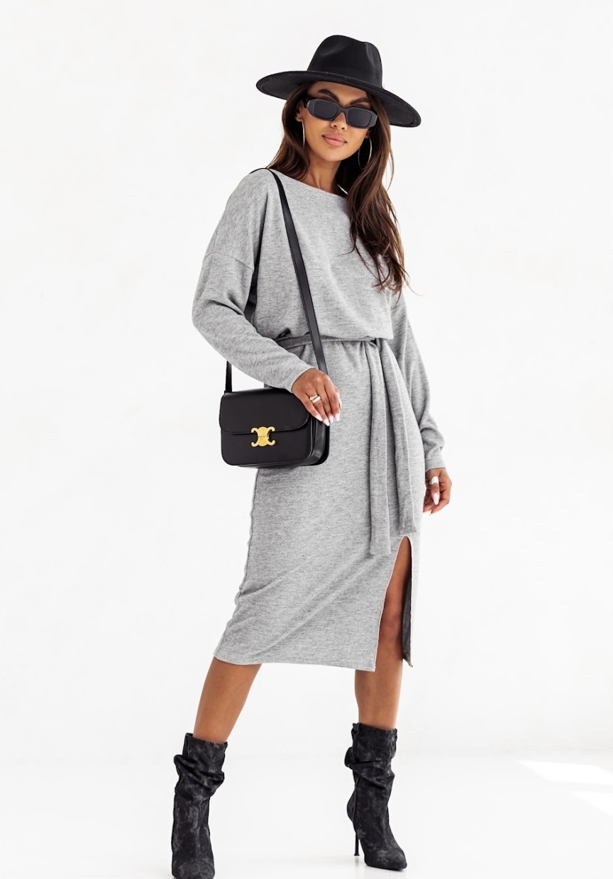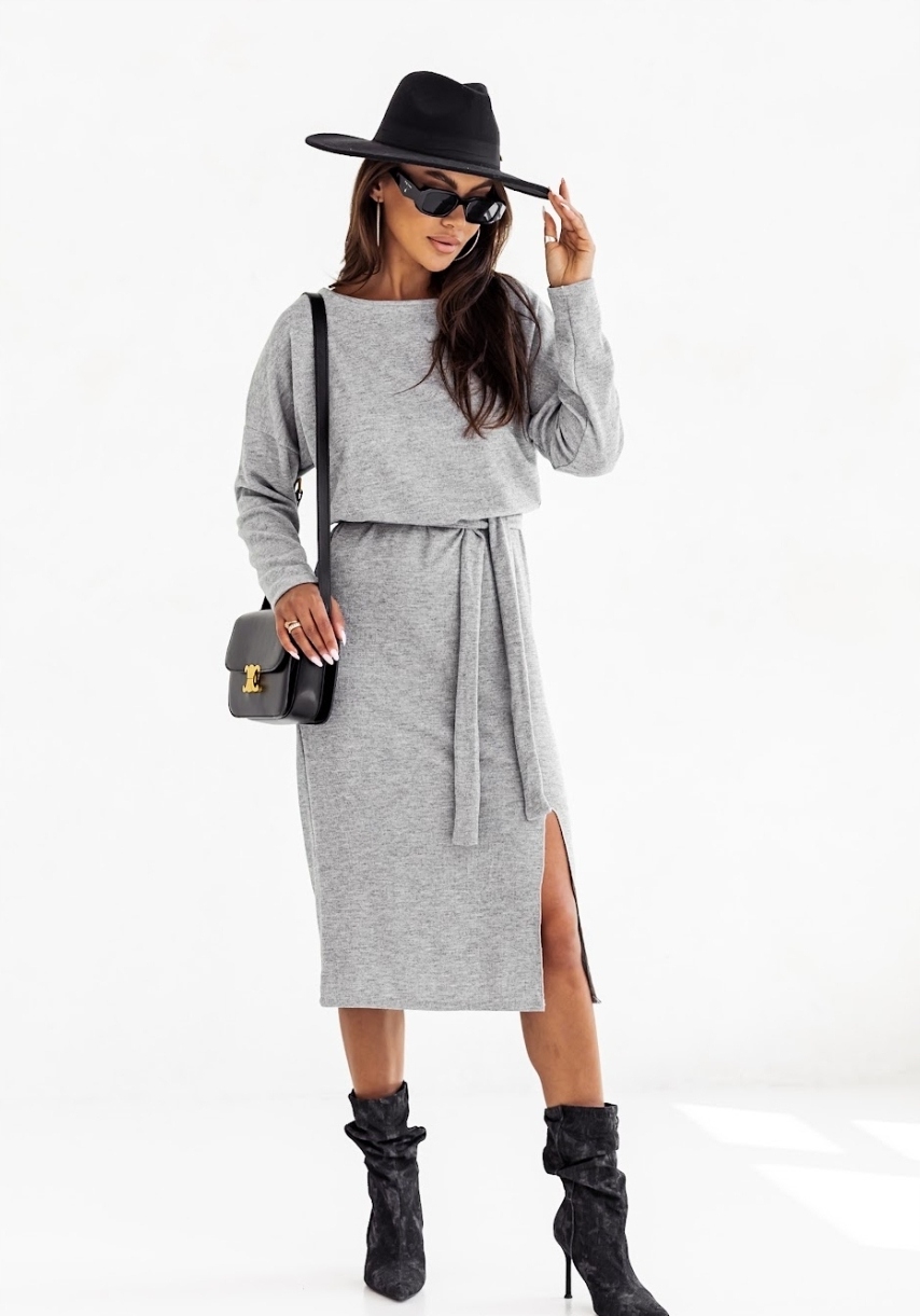 Model | PIĘKNA SWETERKOWA CIEPŁA SUKIENKA Z WIĄZANIEM MIDI |