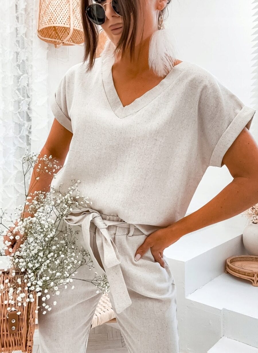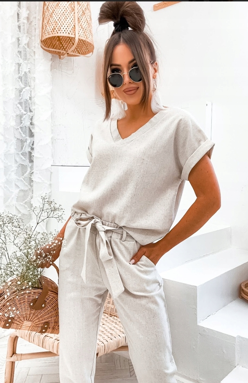 | Model | LETNI KOBIECY KOMPLET LNIANY BLUZKA I SPODNIE |