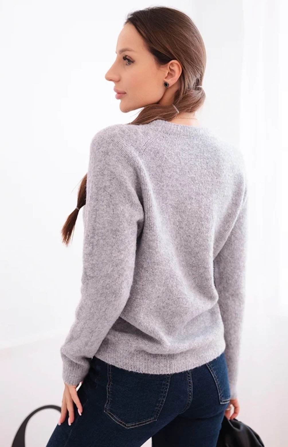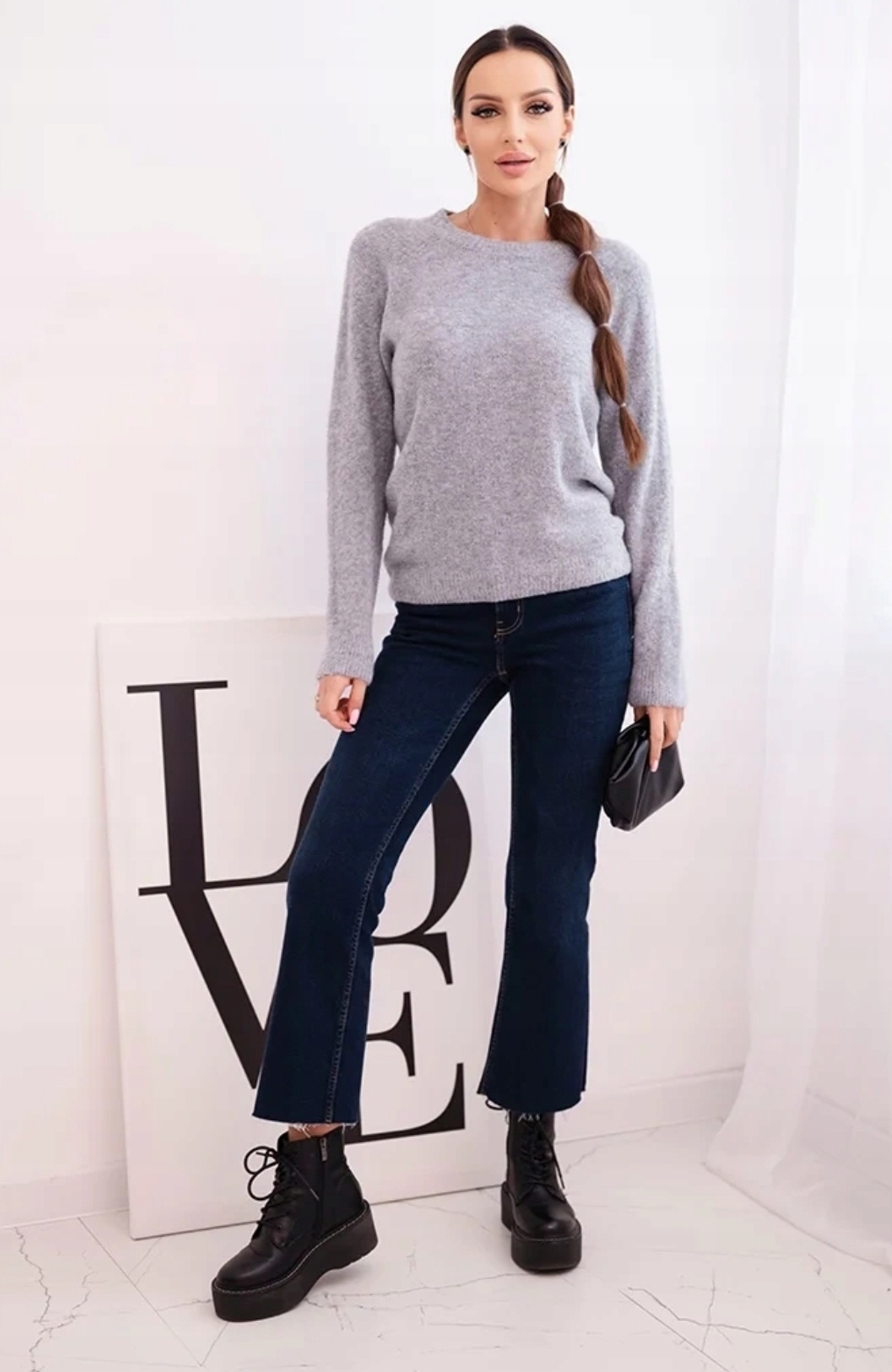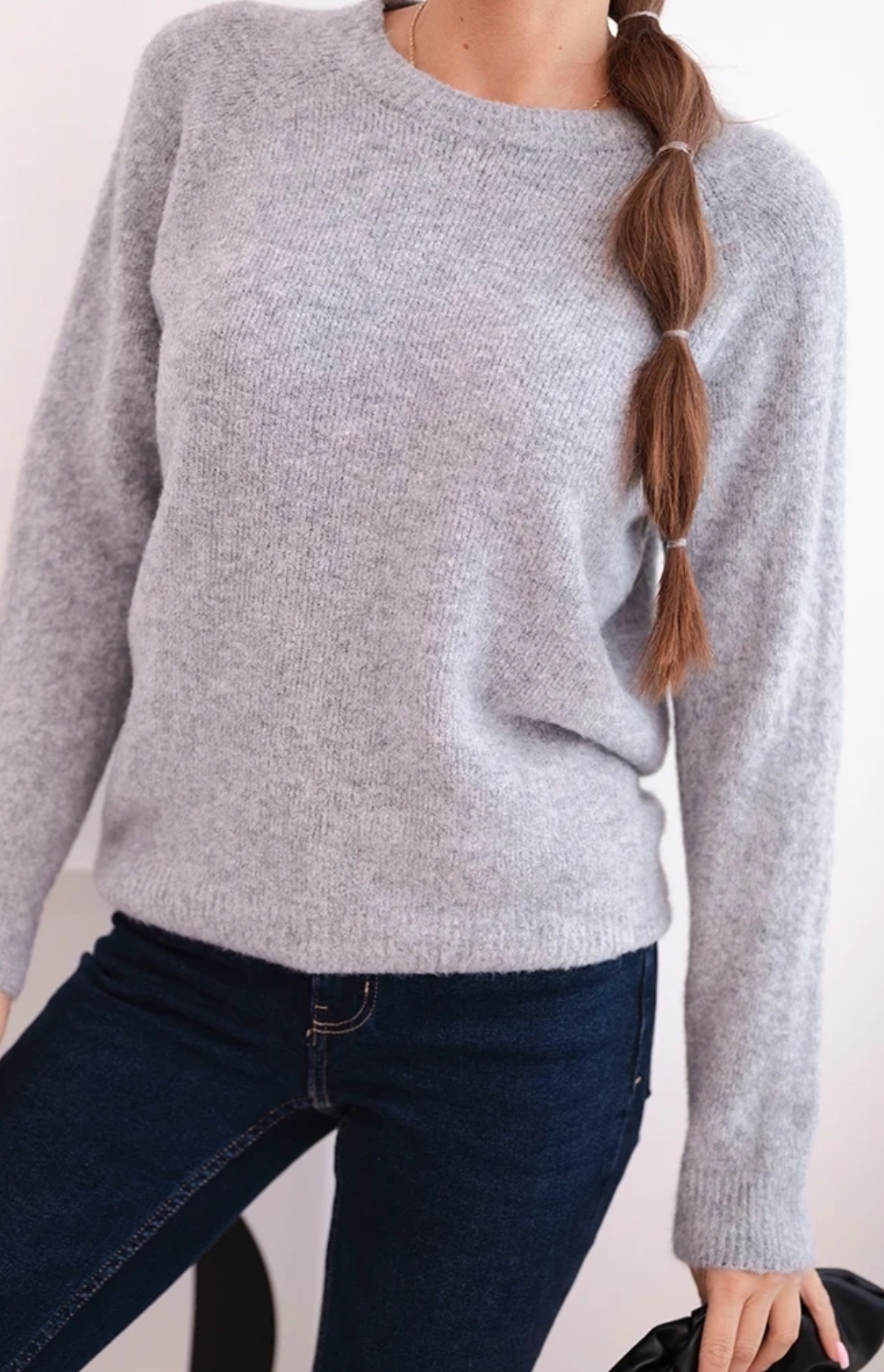 Klasyczny sweter damski wykonany z wysokiej jakości włoskiej przędzy z domieszką delikatnego baby alpaca. Miękki, lekki i przyjemny w dotyku, idealny do codziennych i eleganckich stylizacji.