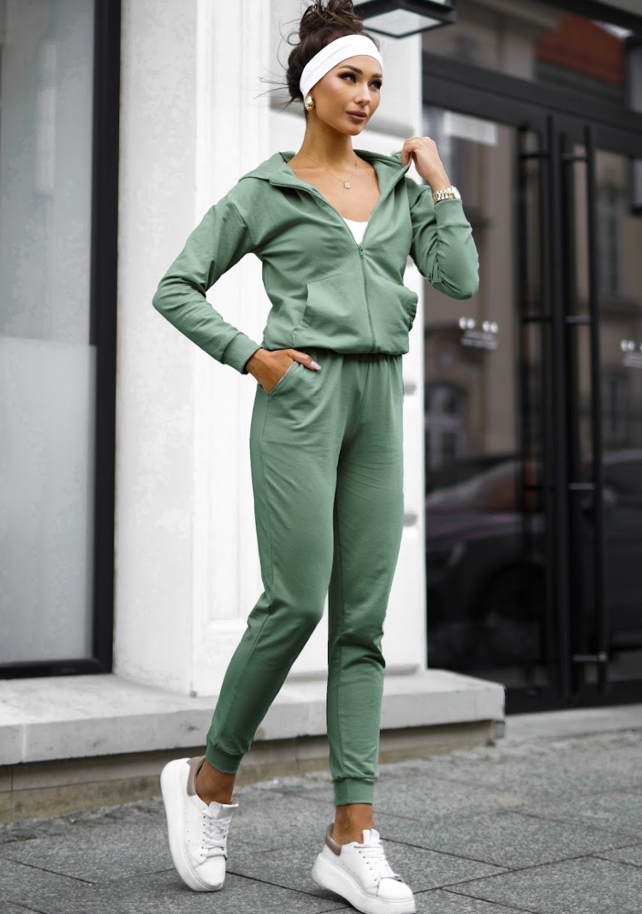 Lekki dres bawełniany uszyty z wysokogatunkowej dzianiny od polskiego producenta. Bluza na suwak z kapturem i kieszeniami typu kangurka oraz wygodne spodnie z wysokim stanem i kieszeniami tworzą idealny zestaw na co dzień. Miękka, elastyczna bawełna z dodatkiem elastanu zapewnia komfort noszenia i swobodę ruchów. Dostępny w rozmiarach S–XL.
