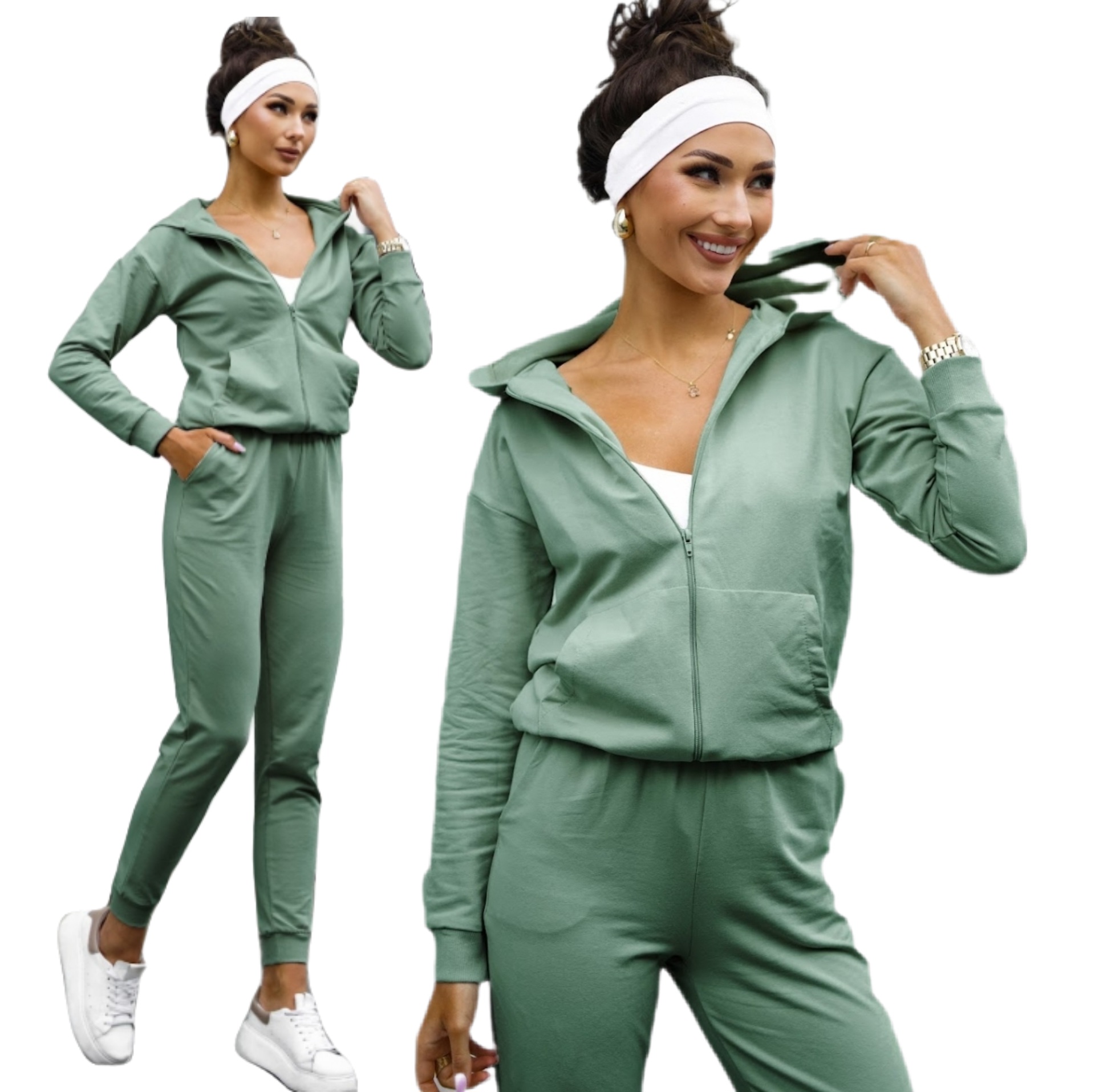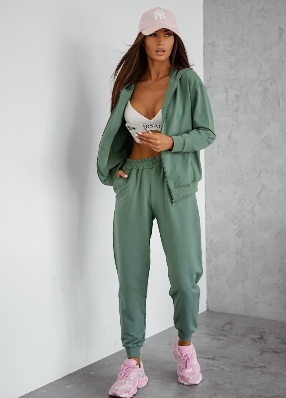 Lekki dres bawełniany uszyty z wysokogatunkowej dzianiny od polskiego producenta. Bluza na suwak z kapturem i kieszeniami typu kangurka oraz wygodne spodnie z wysokim stanem i kieszeniami tworzą idealny zestaw na co dzień. Miękka, elastyczna bawełna z dodatkiem elastanu zapewnia komfort noszenia i swobodę ruchów. Dostępny w rozmiarach S–XL.