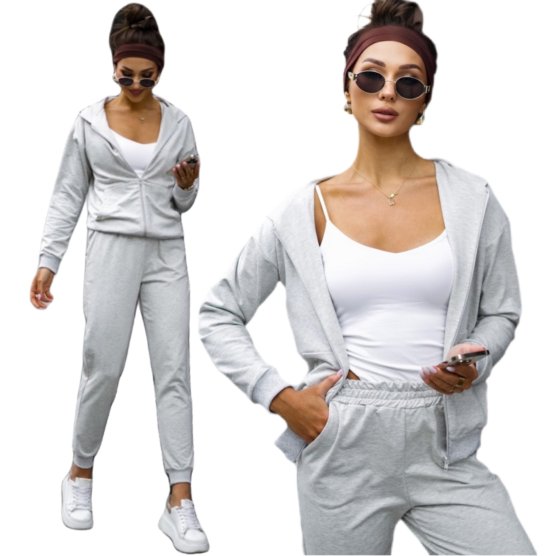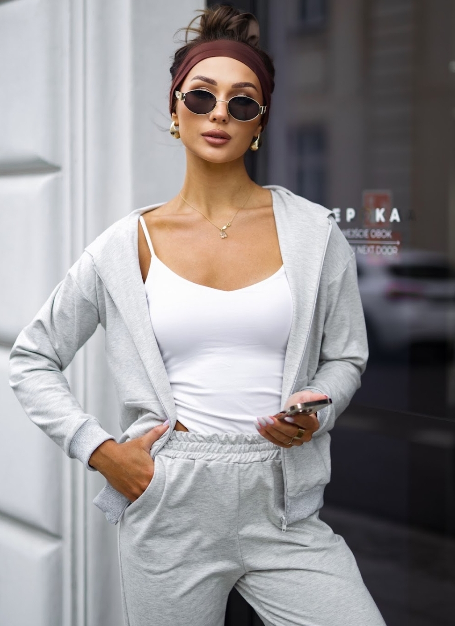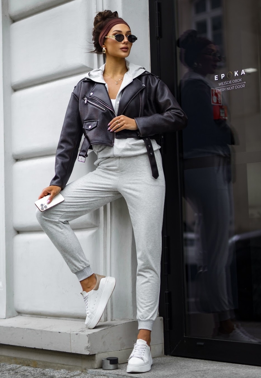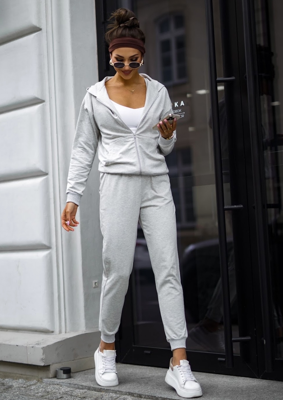 Lekki dres bawełniany uszyty z wysokogatunkowej dzianiny od polskiego producenta. Bluza na suwak z kapturem i kieszeniami typu kangurka oraz wygodne spodnie z wysokim stanem i kieszeniami tworzą idealny zestaw na co dzień. Miękka, elastyczna bawełna z dodatkiem elastanu zapewnia komfort noszenia i swobodę ruchów. Dostępny w rozmiarach S–XL.