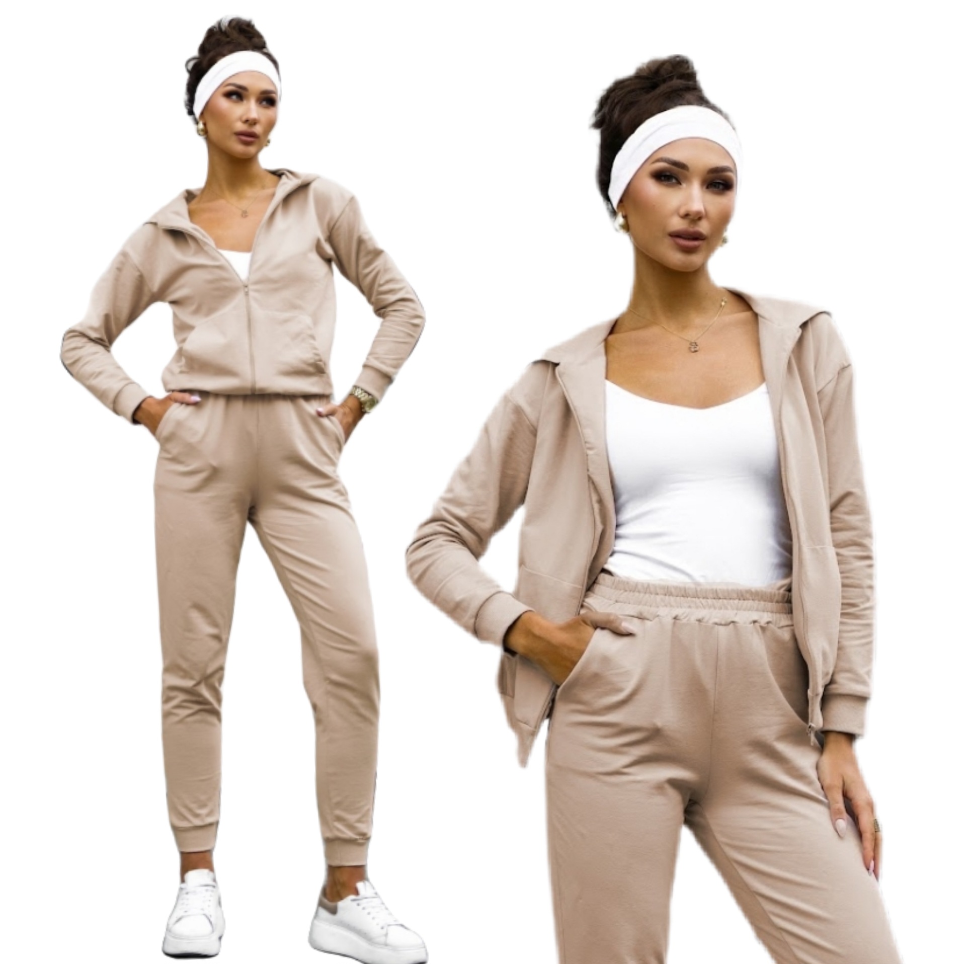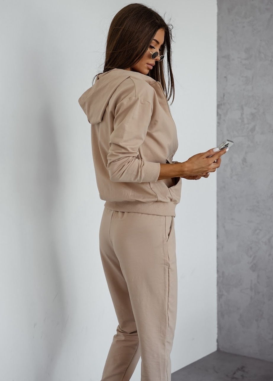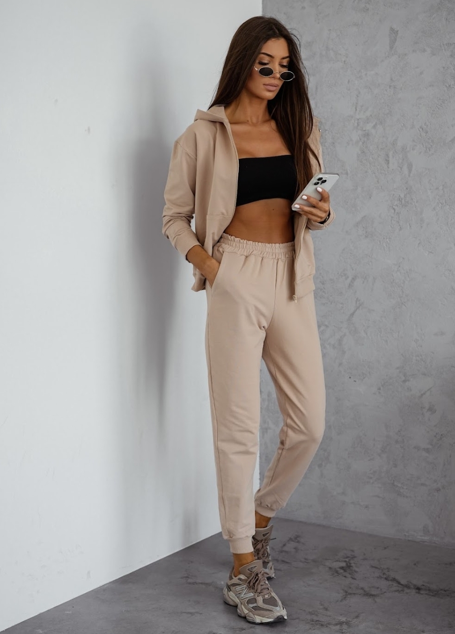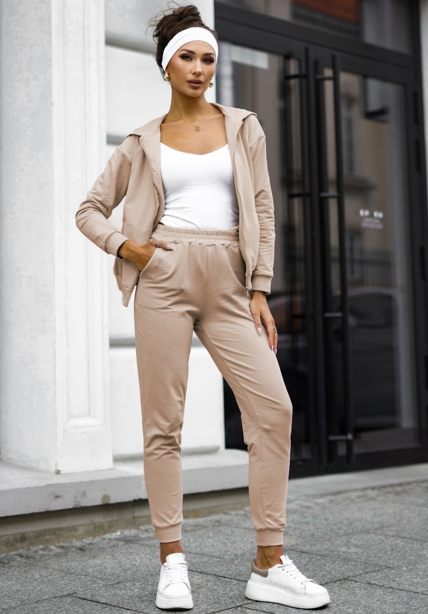 Lekki dres bawełniany uszyty z wysokogatunkowej dzianiny od polskiego producenta. Bluza na suwak z kapturem i kieszeniami typu kangurka oraz wygodne spodnie z wysokim stanem i kieszeniami tworzą idealny zestaw na co dzień. Miękka, elastyczna bawełna z dodatkiem elastanu zapewnia komfort noszenia i swobodę ruchów. Dostępny w rozmiarach S–XL.