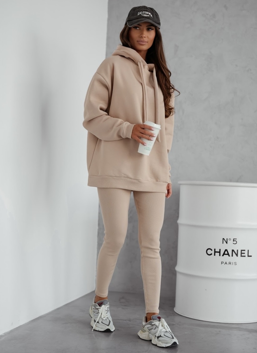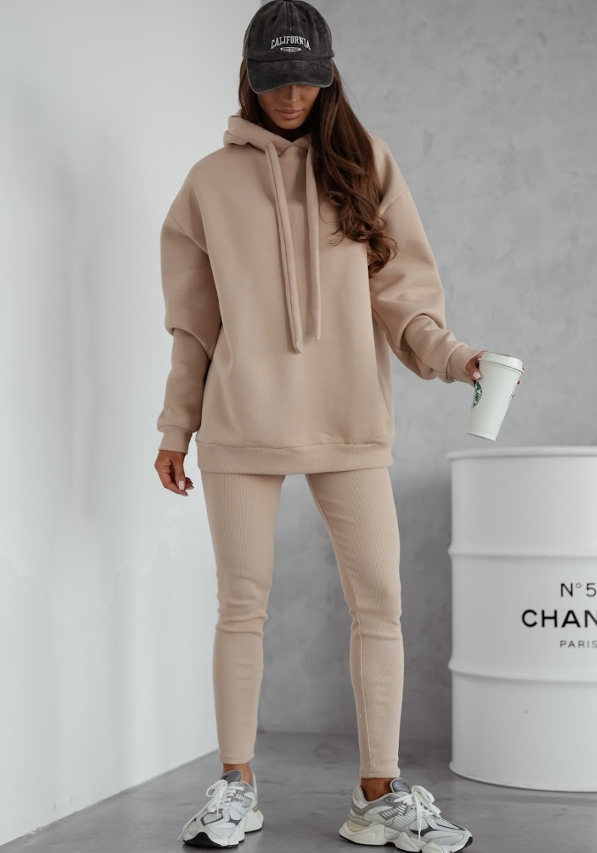 Ten komplet doskonale sprawdzi się w codziennych, casualowych stylizacjach. Można go nosić z ulubionymi sneakersami dla sportowego looku, lub połączyć z modnymi botkami i ramoneską dla bardziej wyrazistego outfitu. Idealny na spacer, zakupy, spotkanie z przyjaciółmi czy relaks w domu.