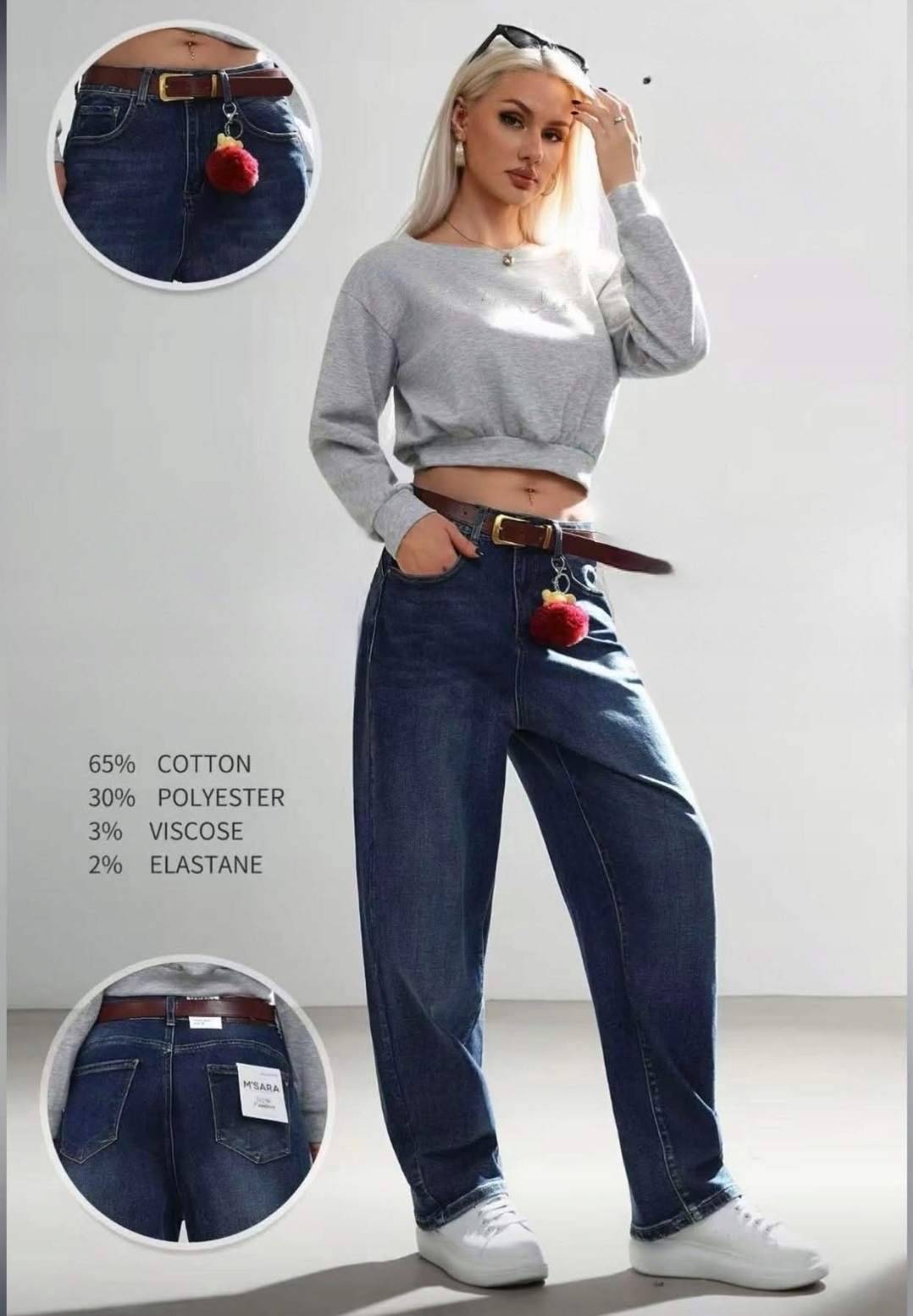 Wysokiej jakości jeansy, które łączą klasykę z nowoczesnym stylem. Spodnie charakteryzują się eleganckim, szerokim krojem balloon, który dodaje lekkości i komfortu, jednocześnie podkreślając kobiecą sylwetkę. Wysoki stan wydłuża nogi i optycznie modeluje talię. Idealne zarówno do biura, jak i na spotkania ze znajomymi. Spodnie te to doskonały wybór dla kobiet szukających wygody w połączeniu z modnym wyglądem. Wykonane z trwałego denimu, zapewniają komfort noszenia przez cały dzień.