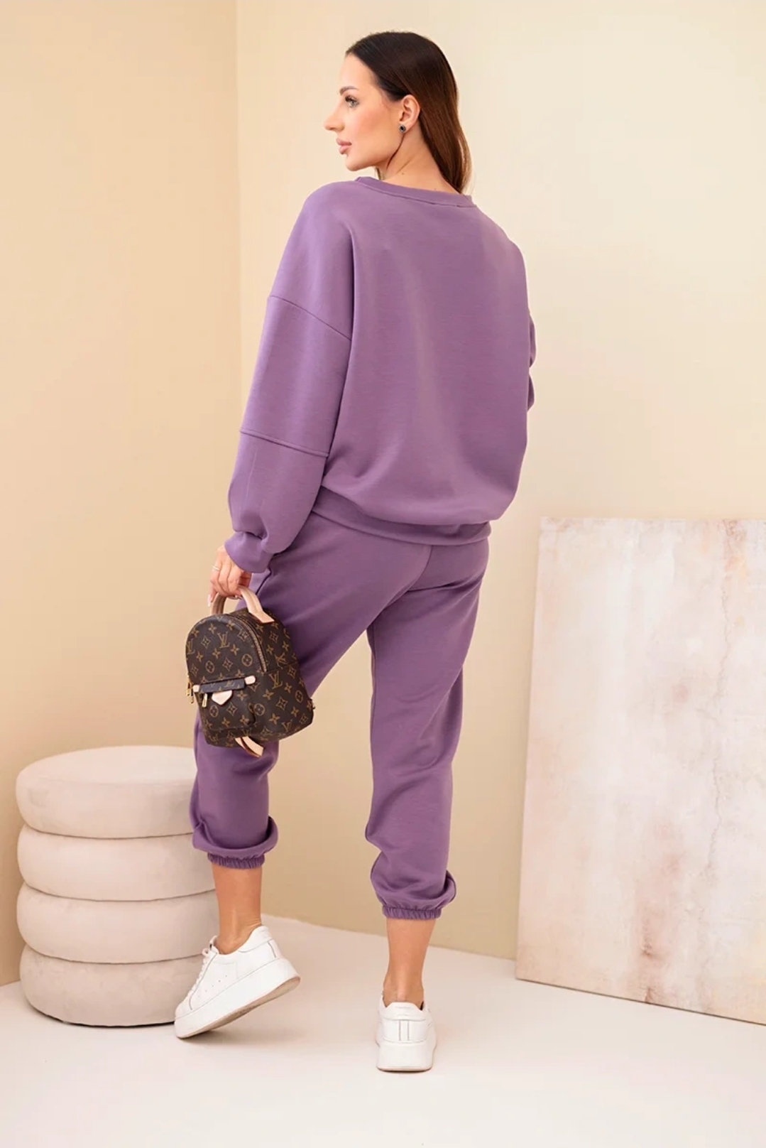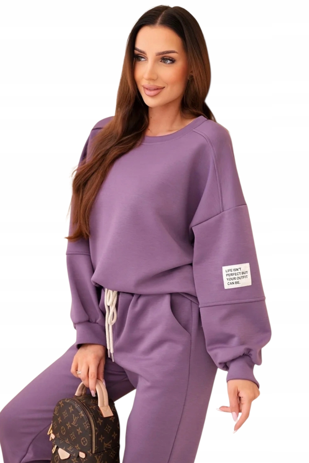 Komplet z wiskozy, składający się z bluzy i spodni, to idealny wybór dla osób ceniących wygodę i elegancję. Wykonany z miękkiej, oddychającej wiskozy, zapewnia komfort noszenia przez cały dzień, doskonale dopasowując się do sylwetki. Bluza ma luźny, swobodny krój, a spodnie charakteryzują się elastyczną talią, co gwarantuje wygodę i swobodę ruchów. Ten zestaw świetnie sprawdzi się zarówno na co dzień, jak i na bardziej casualowe wyjścia, łącząc w sobie stylowy wygląd i funkcjonalność. Rozmiar jest uniwersalny i pasuje dla kobiet noszących rozmiar S, M lub L.
