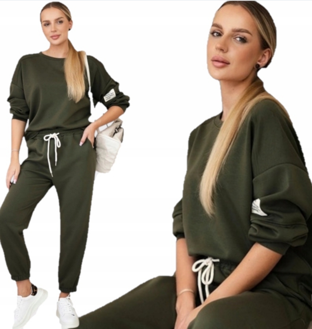 Komplet z wiskozy, składający się z bluzy i spodni, to idealny wybór dla osób ceniących wygodę i elegancję. Wykonany z miękkiej, oddychającej wiskozy, zapewnia komfort noszenia przez cały dzień, doskonale dopasowując się do sylwetki. Bluza ma luźny, swobodny krój, a spodnie charakteryzują się elastyczną talią, co gwarantuje wygodę i swobodę ruchów. Ten zestaw świetnie sprawdzi się zarówno na co dzień, jak i na bardziej casualowe wyjścia, łącząc w sobie stylowy wygląd i funkcjonalność. Rozmiar jest uniwersalny i pasuje dla kobiet noszących rozmiar S, M lub L.