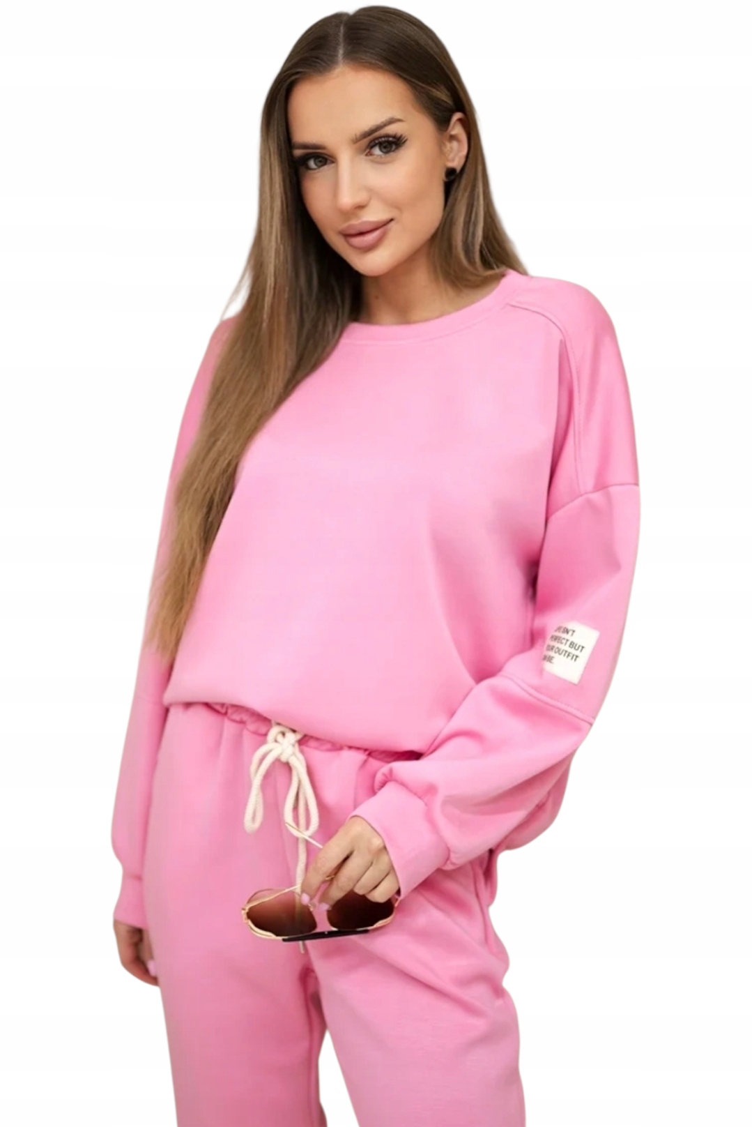 Komplet z wiskozy, składający się z bluzy i spodni, to idealny wybór dla osób ceniących wygodę i elegancję. Wykonany z miękkiej, oddychającej wiskozy, zapewnia komfort noszenia przez cały dzień, doskonale dopasowując się do sylwetki. Bluza ma luźny, swobodny krój, a spodnie charakteryzują się elastyczną talią, co gwarantuje wygodę i swobodę ruchów. Ten zestaw świetnie sprawdzi się zarówno na co dzień, jak i na bardziej casualowe wyjścia, łącząc w sobie stylowy wygląd i funkcjonalność. Rozmiar jest uniwersalny i pasuje dla kobiet noszących rozmiar S, M lub L.
