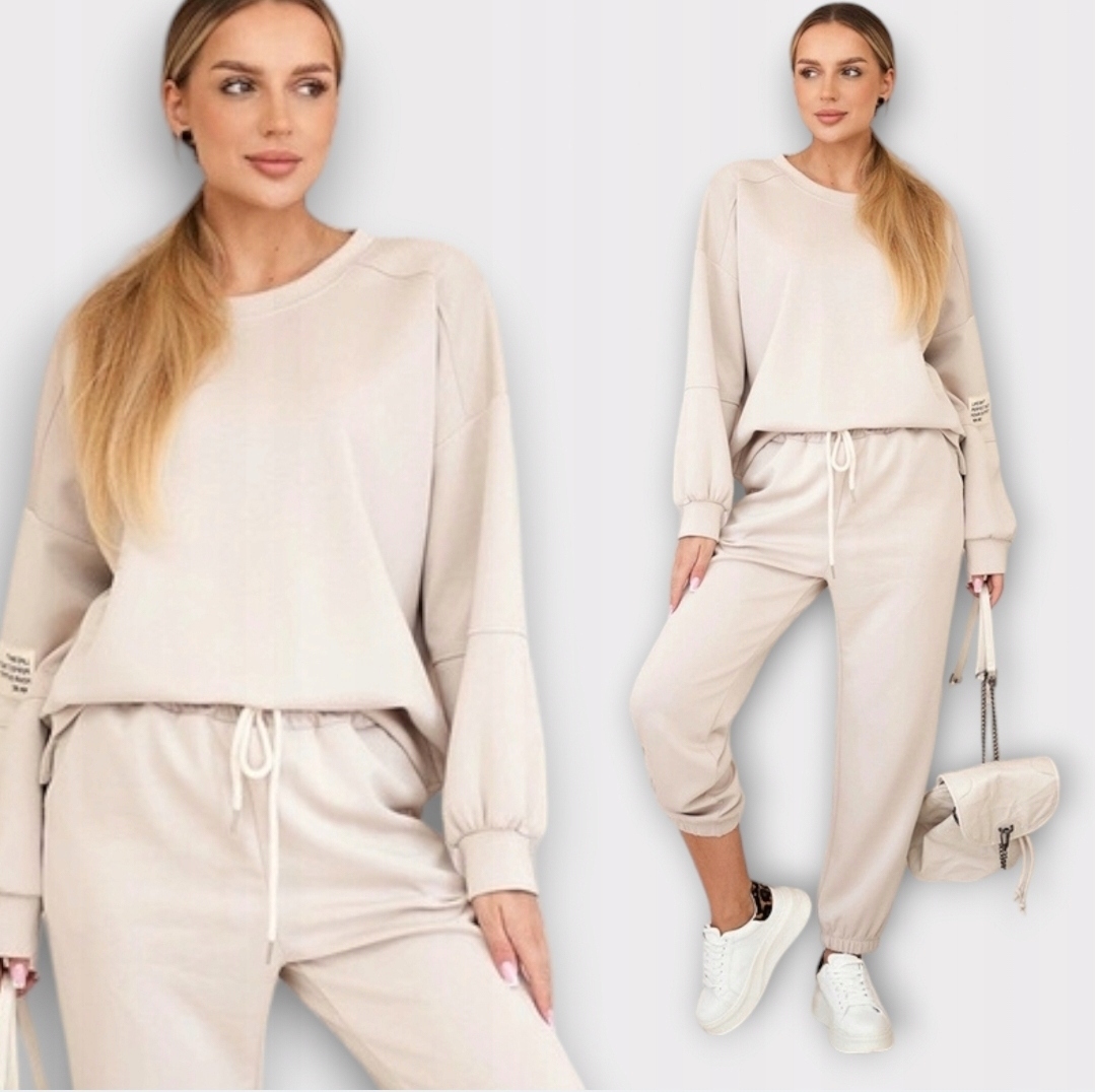 Komplet z wiskozy, składający się z bluzy i spodni, to idealny wybór dla osób ceniących wygodę i elegancję. Wykonany z miękkiej, oddychającej wiskozy, zapewnia komfort noszenia przez cały dzień, doskonale dopasowując się do sylwetki. Bluza ma luźny, swobodny krój, a spodnie charakteryzują się elastyczną talią, co gwarantuje wygodę i swobodę ruchów. Ten zestaw świetnie sprawdzi się zarówno na co dzień, jak i na bardziej casualowe wyjścia, łącząc w sobie stylowy wygląd i funkcjonalność. Rozmiar jest uniwersalny i pasuje dla kobiet noszących rozmiar S, M lub L.