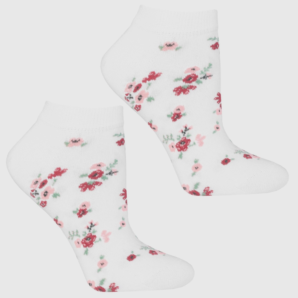 Kolorowe skarpetki z wzorem w drobne kwiatuszki to doskonały sposób na dodanie uroku i delikatności do stylizacji.