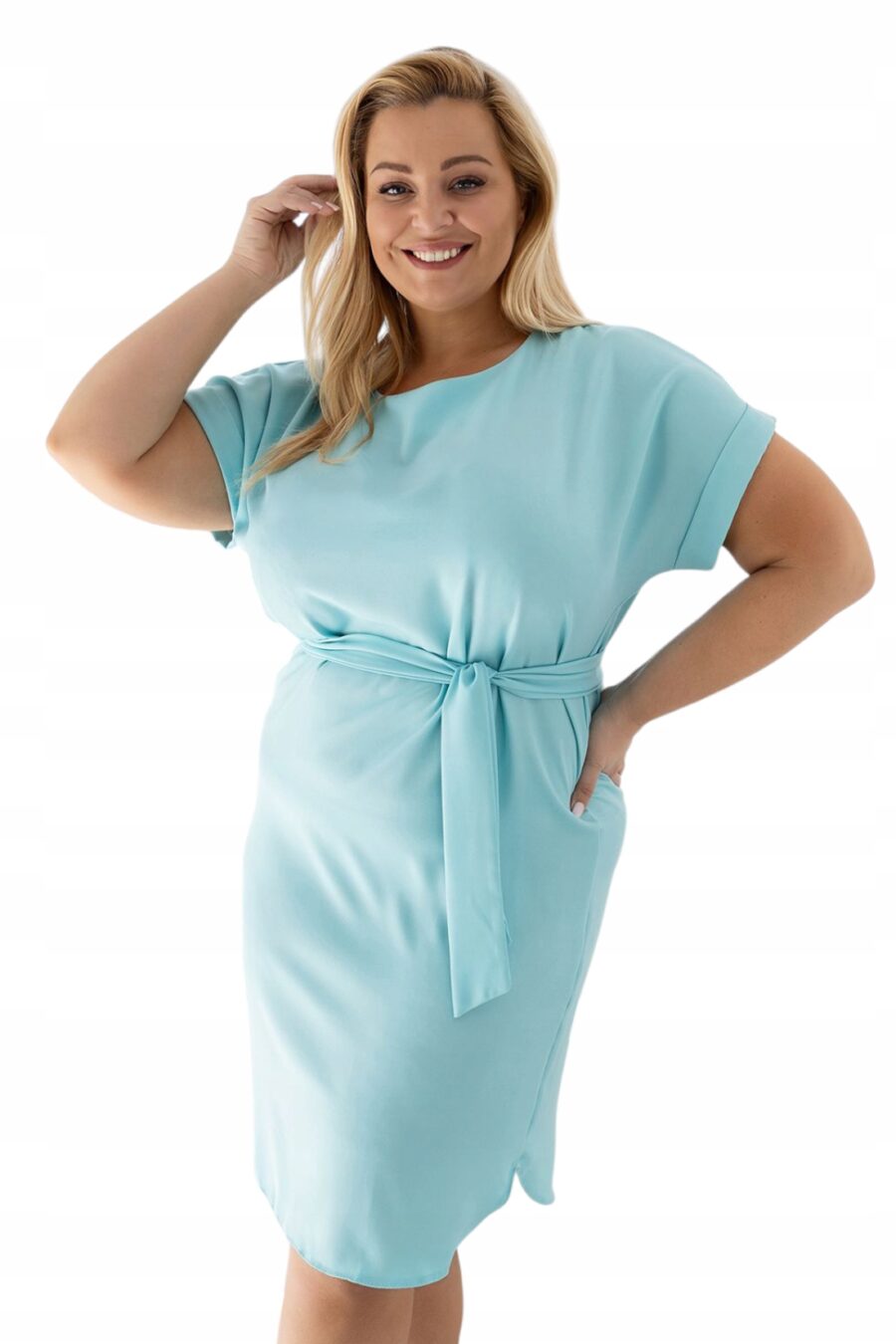 WYGODNA LETNIA LUŹNA SUKIENKA Z WIĄZANIEM PLUS SIZE