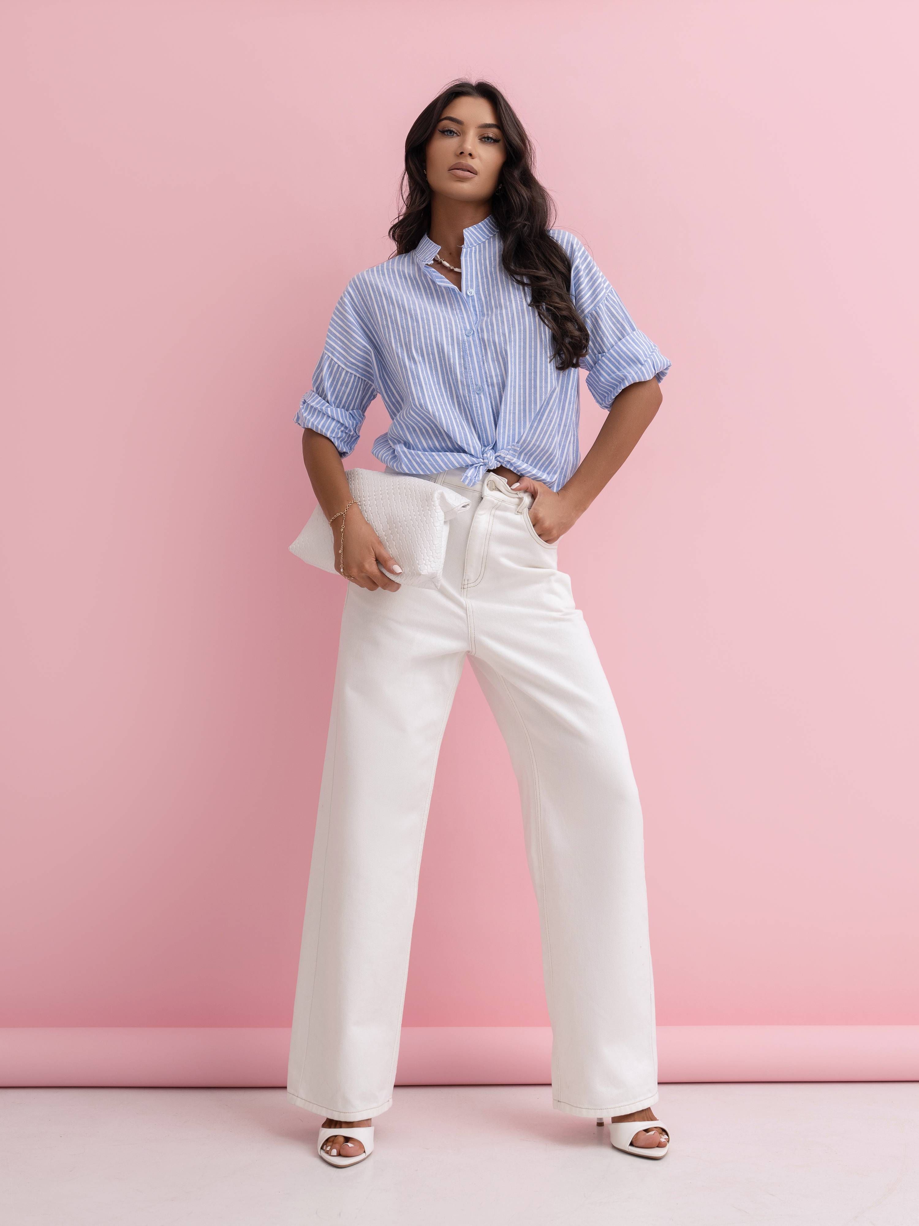 Stylowa, niezwykle kobieca koszula prosto z Włoch, wykonana z 100% wysokogatunkowej bawełny. Model w delikatne, pastelowe paseczki, które pięknie rozświetlają stylizację i nadają jej świeżości.