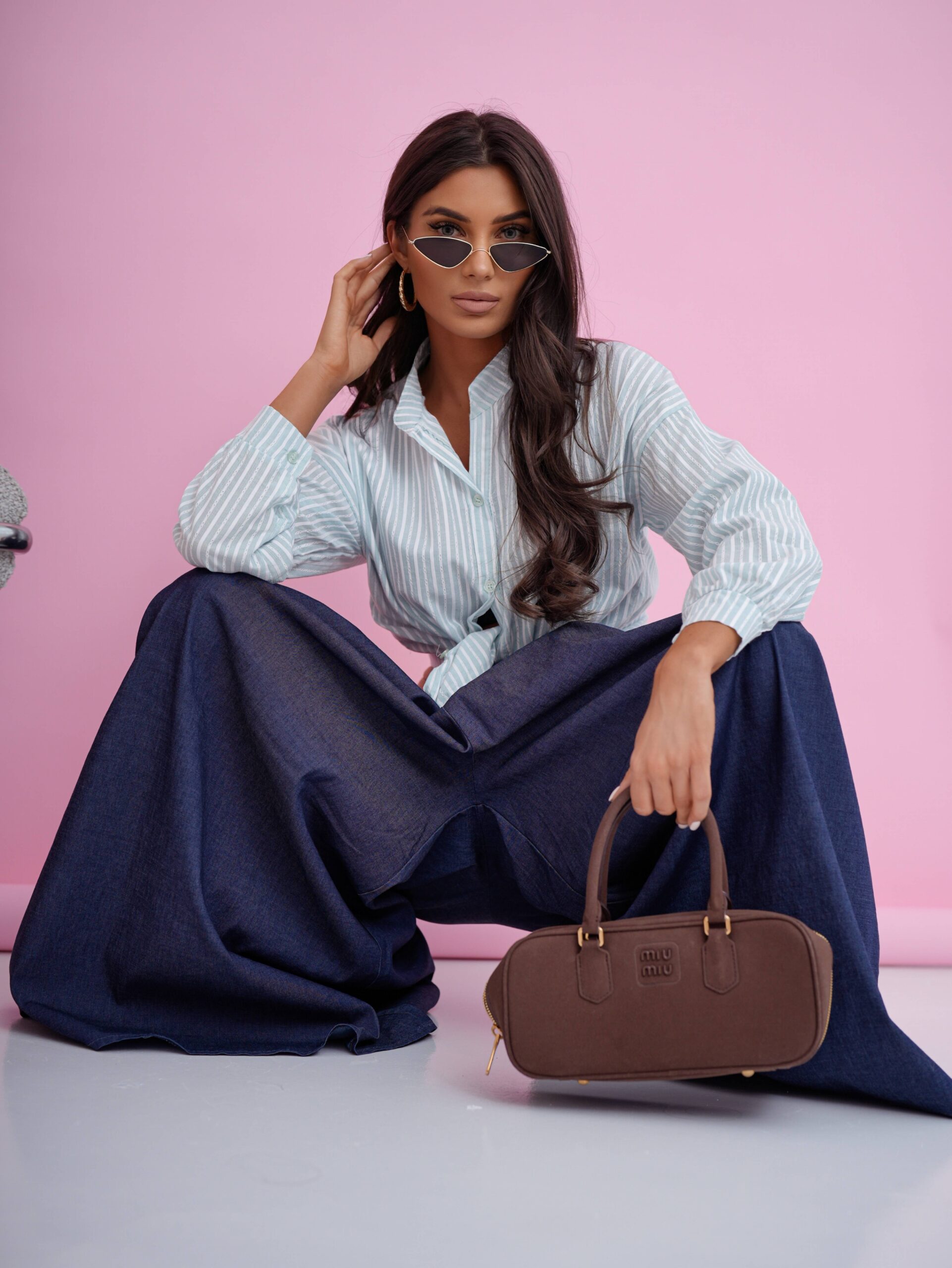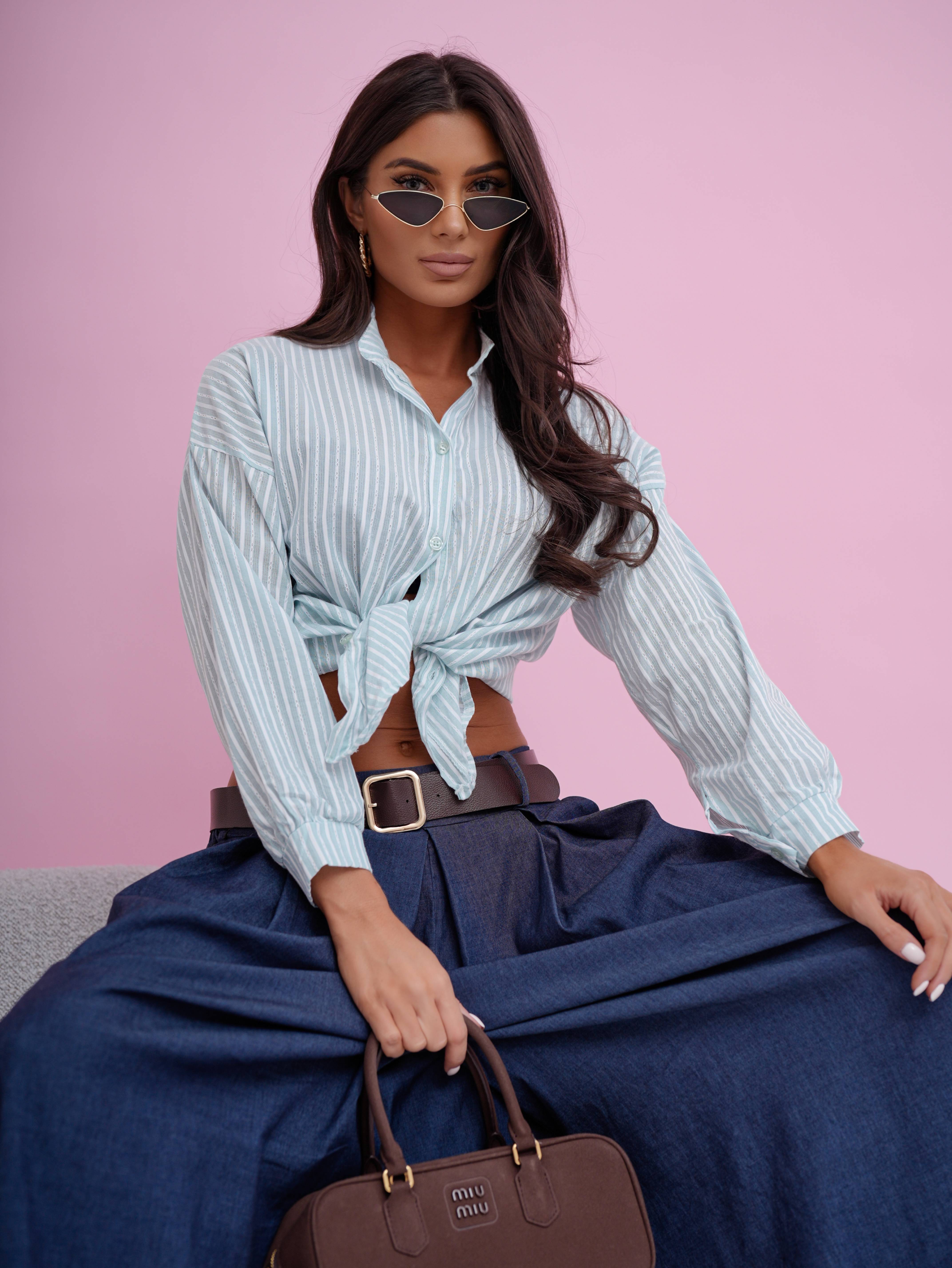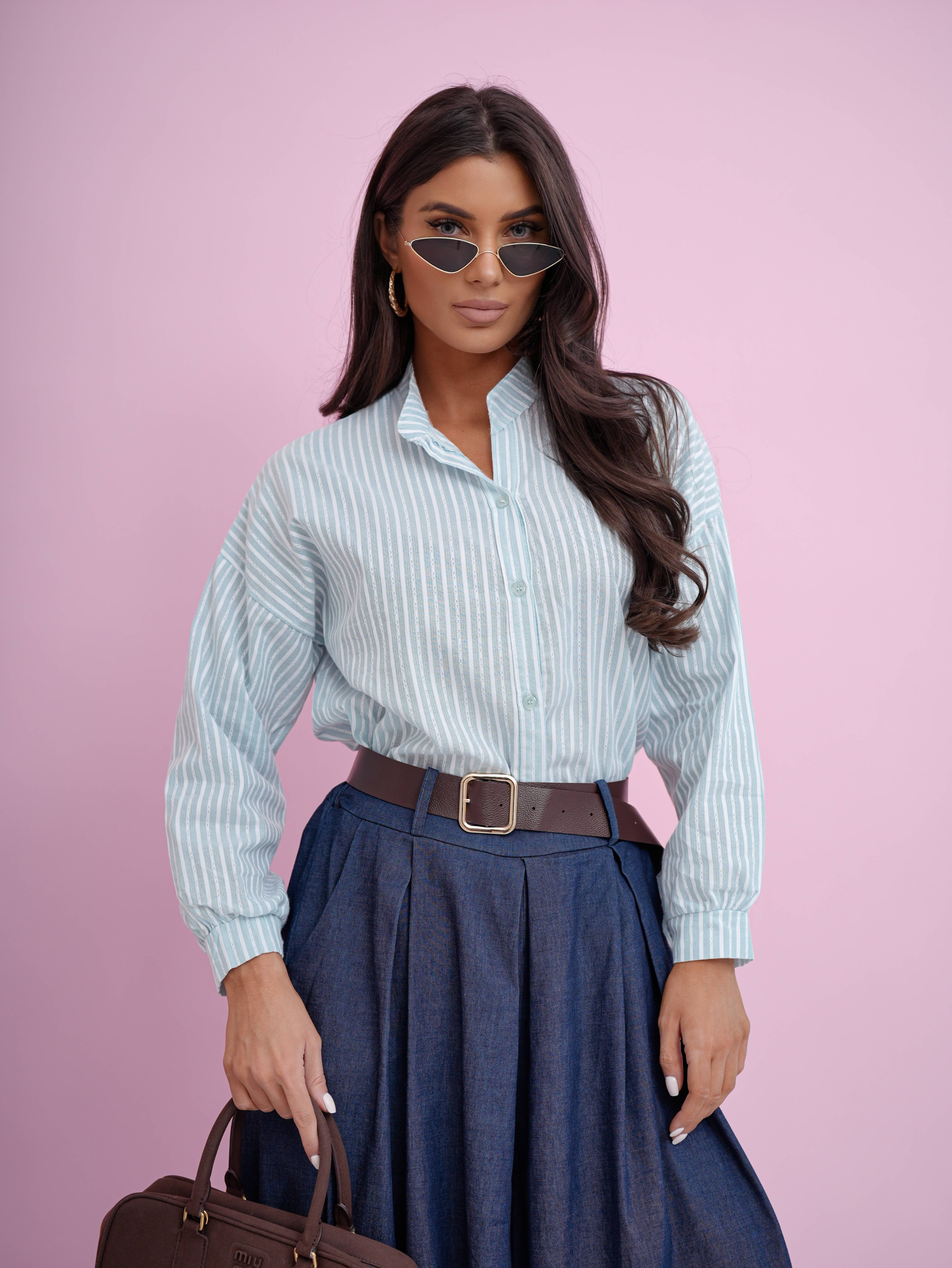 Stylowa, niezwykle kobieca koszula prosto z Włoch, wykonana z 100% wysokogatunkowej bawełny. Model w delikatne, pastelowe paseczki, które pięknie rozświetlają stylizację i nadają jej świeżości.